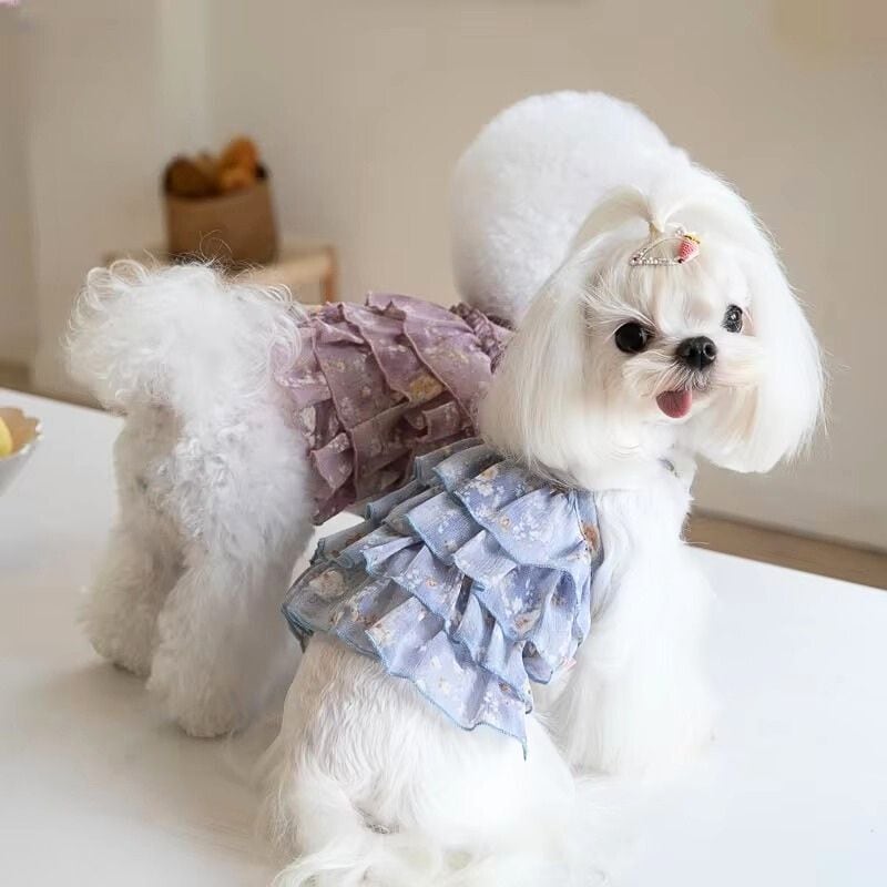 【予約】お花柄フリルワンピース 小花柄ドッグウェア シフォン