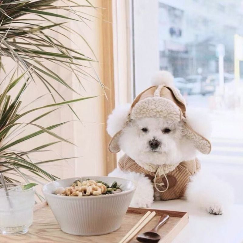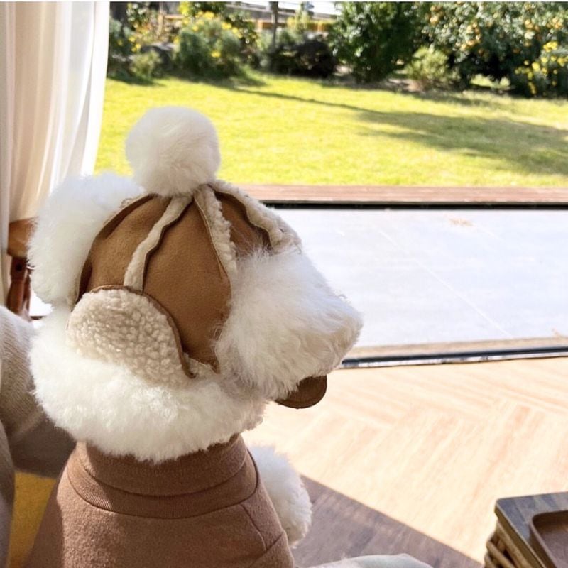 【予約】トラッパーハット フライヤーハット 冬 帽子 ボア 耳あて付き ポンポン付き 小型犬 中型犬用