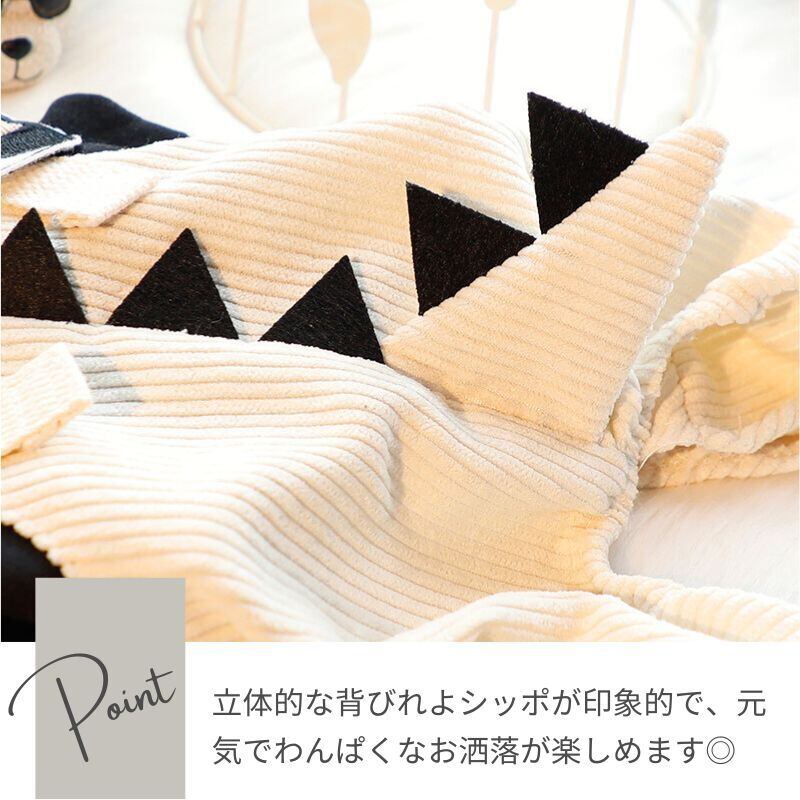 【予約】恐竜デザイン コーデュロイつなぎ サロペット ロンパース 犬服 小型犬用 ドッグウェア