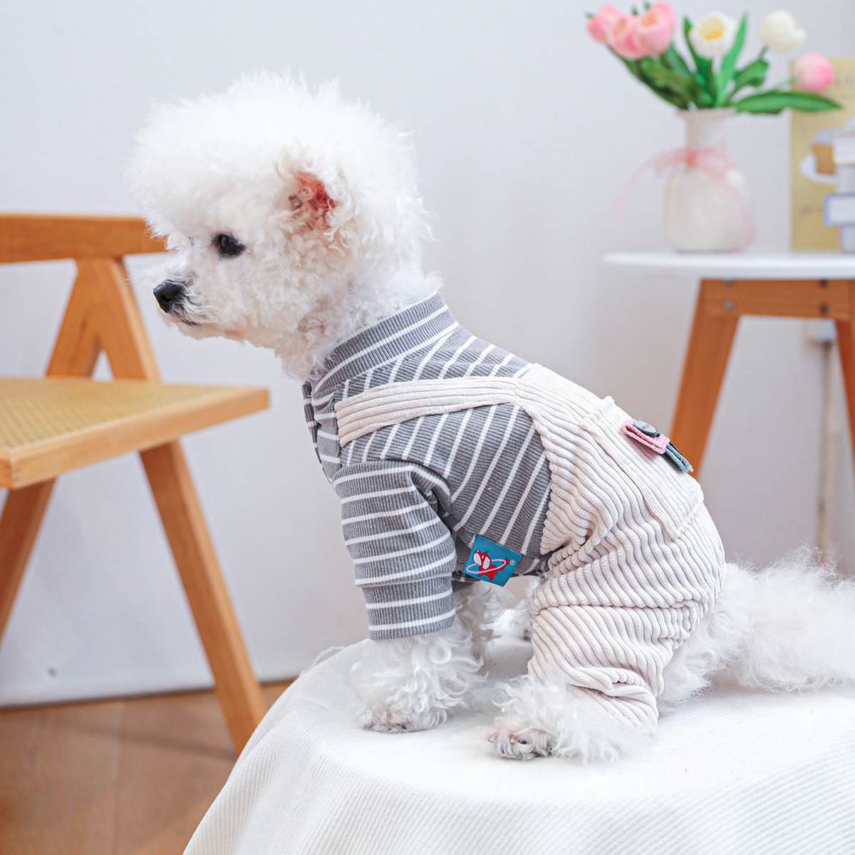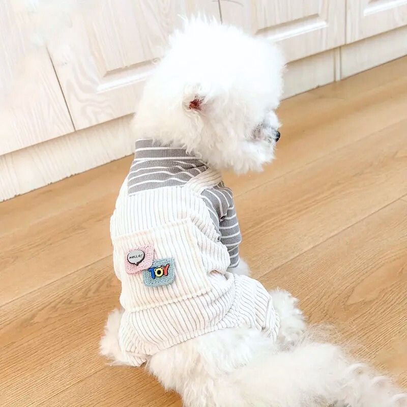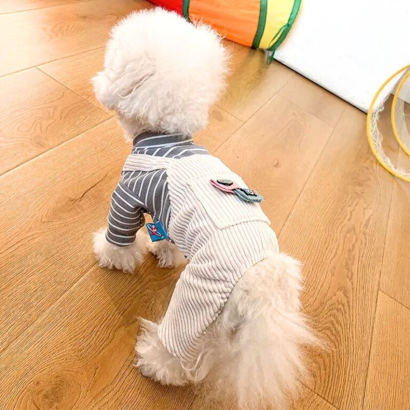 ボーダーTシャツとコーデュロイ風のオーバーオールがドッキングしたデザインで、1枚でおしゃれなレイヤードスタイルが完成します。