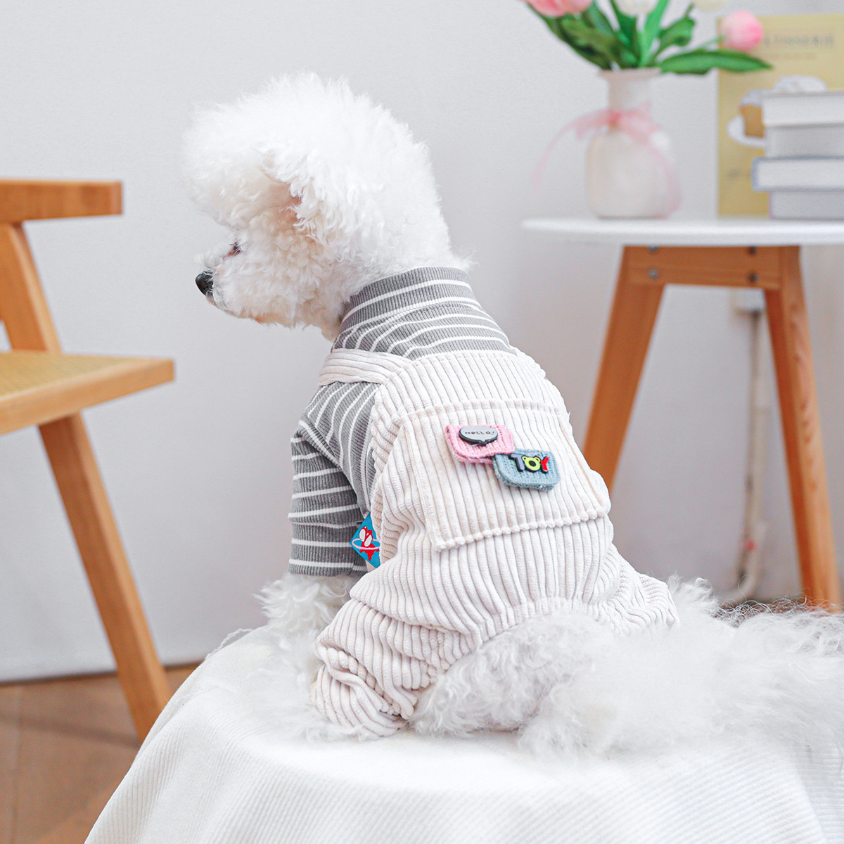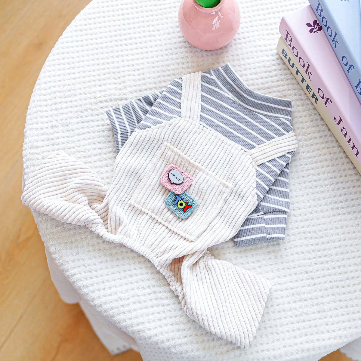 【予約】ボーダーTシャツ付きコーデュロイ風サロペット オーバーオール