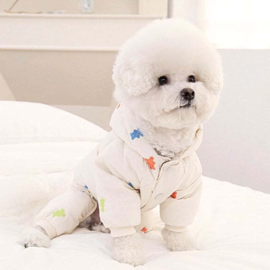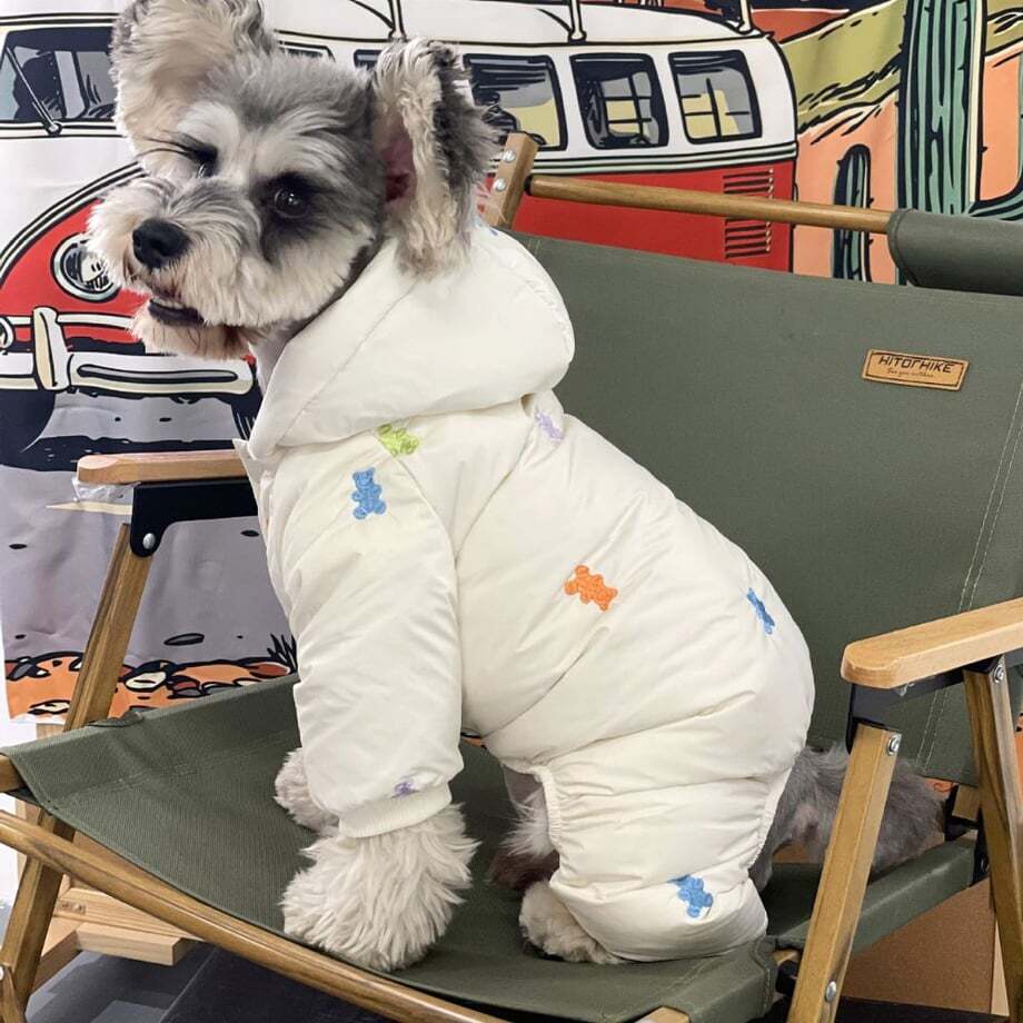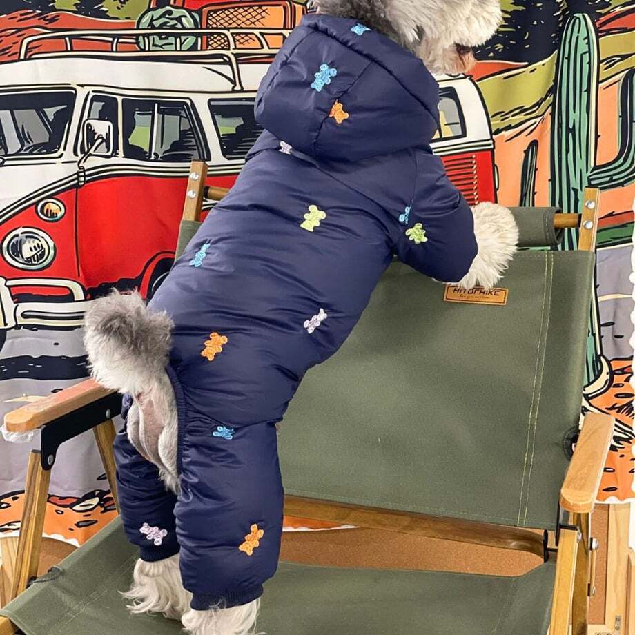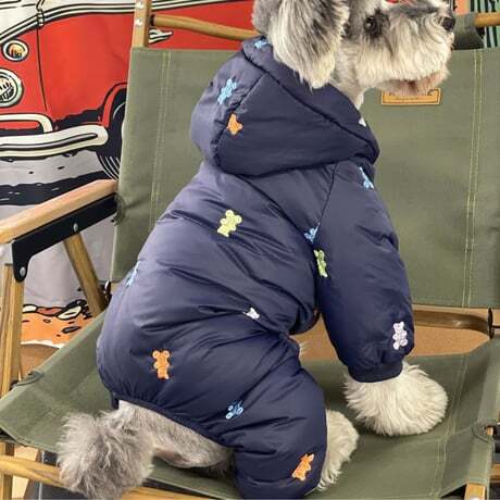 【予約】くまさん柄のロンパースジャケット 犬服 アウター コート ロンパース ペット服 冬服