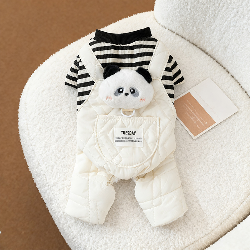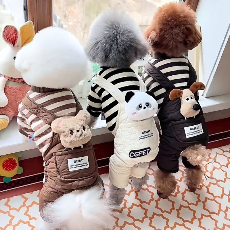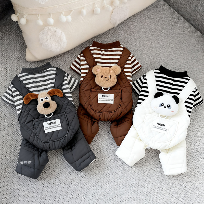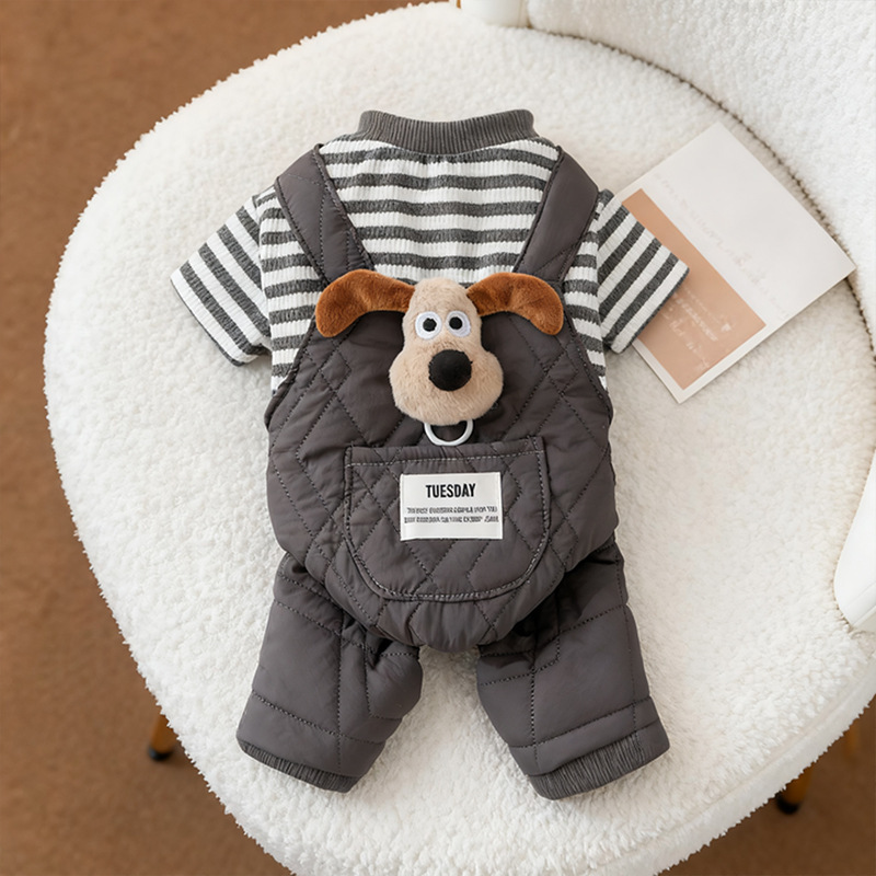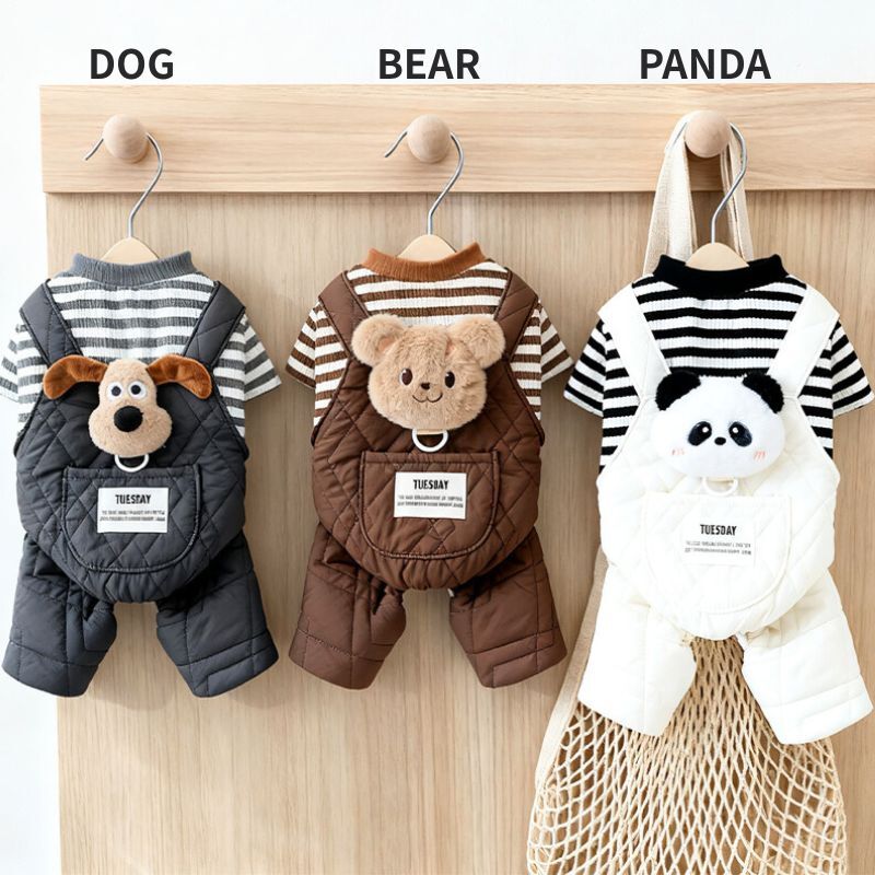 【予約】ぬいぐるみ付ボーダーオーバーオール|犬用秋冬あったか服