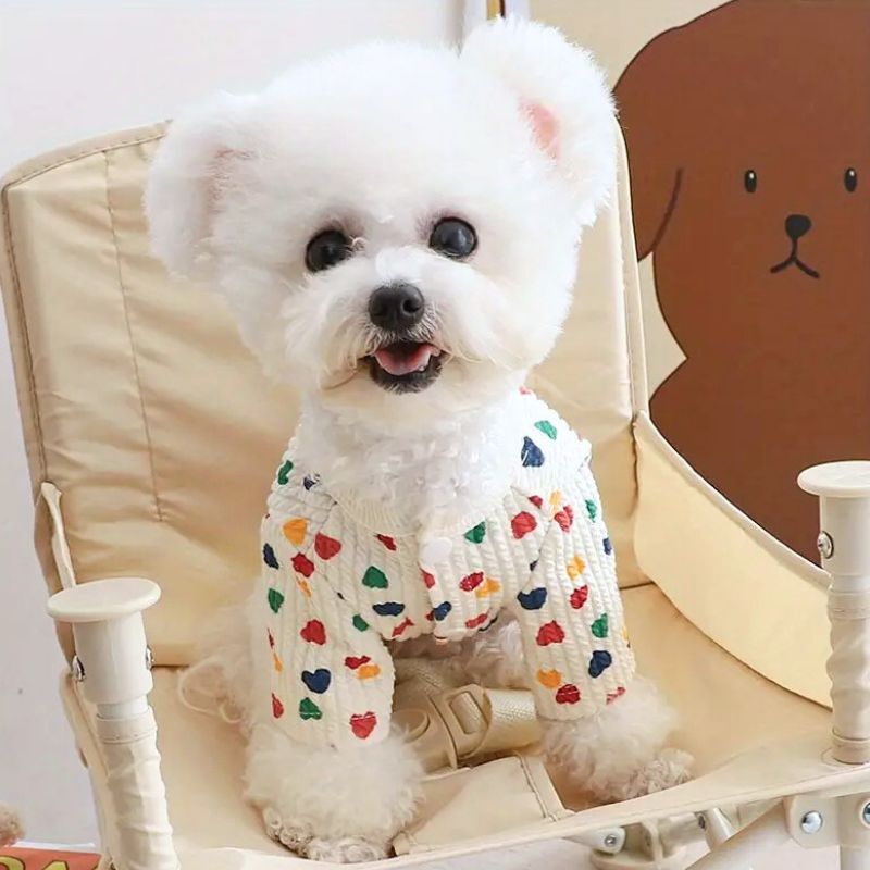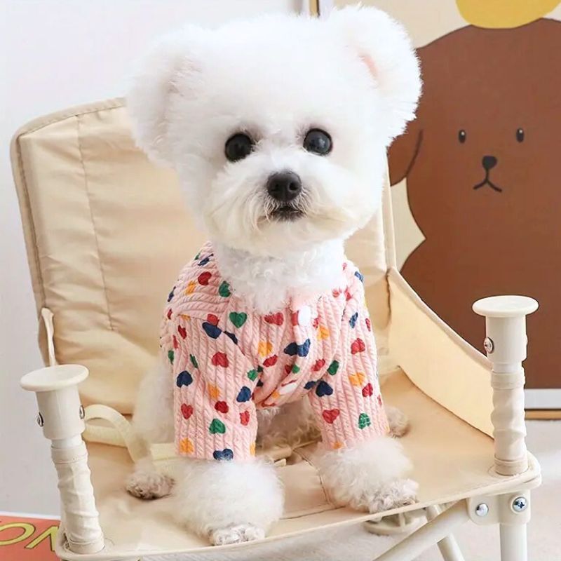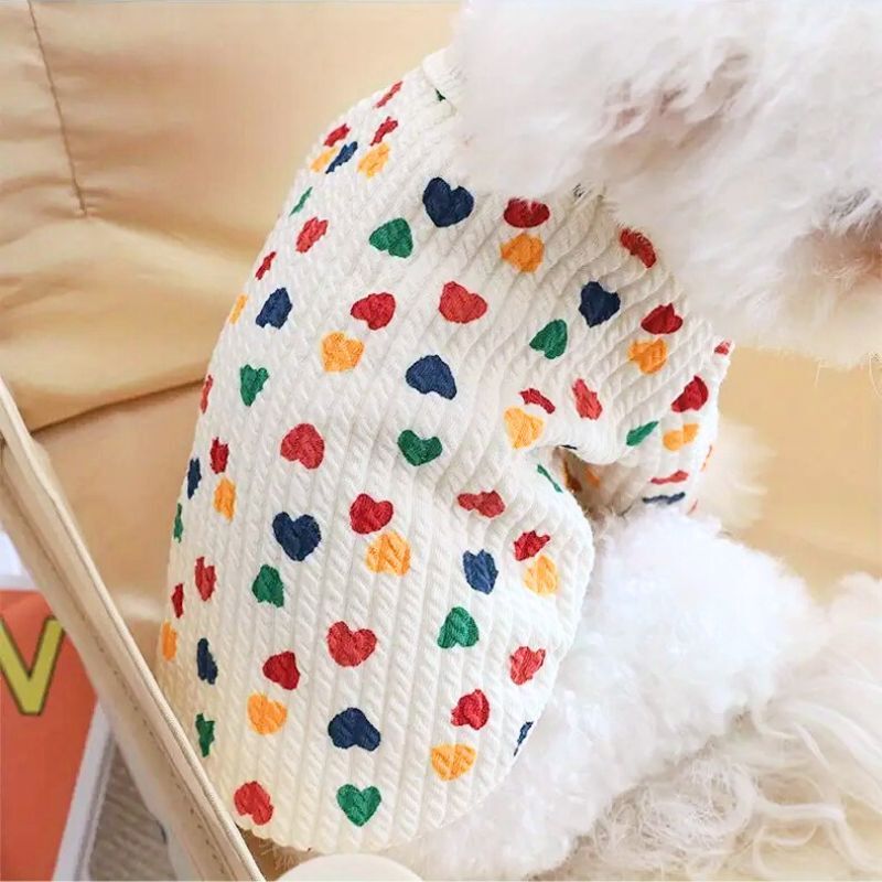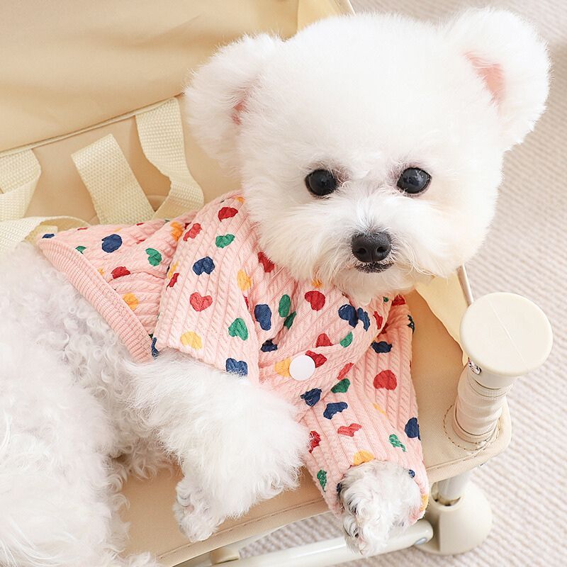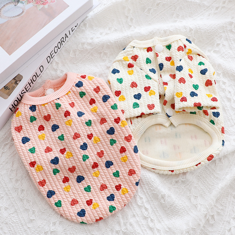 【予約】カラフルハート柄ワッフルロングTシャツ|ふんわり柔らか素材の秋冬トップス