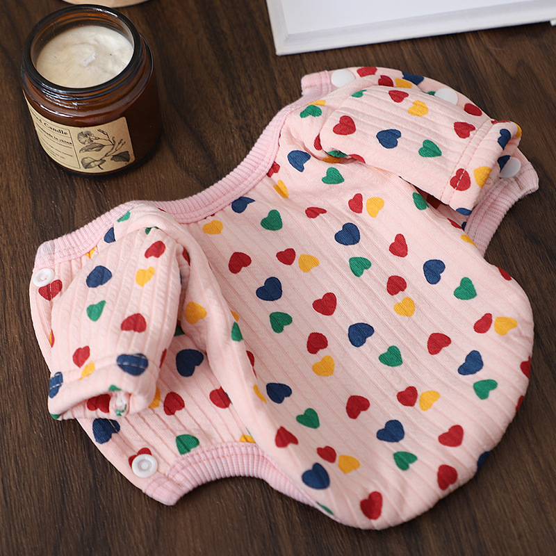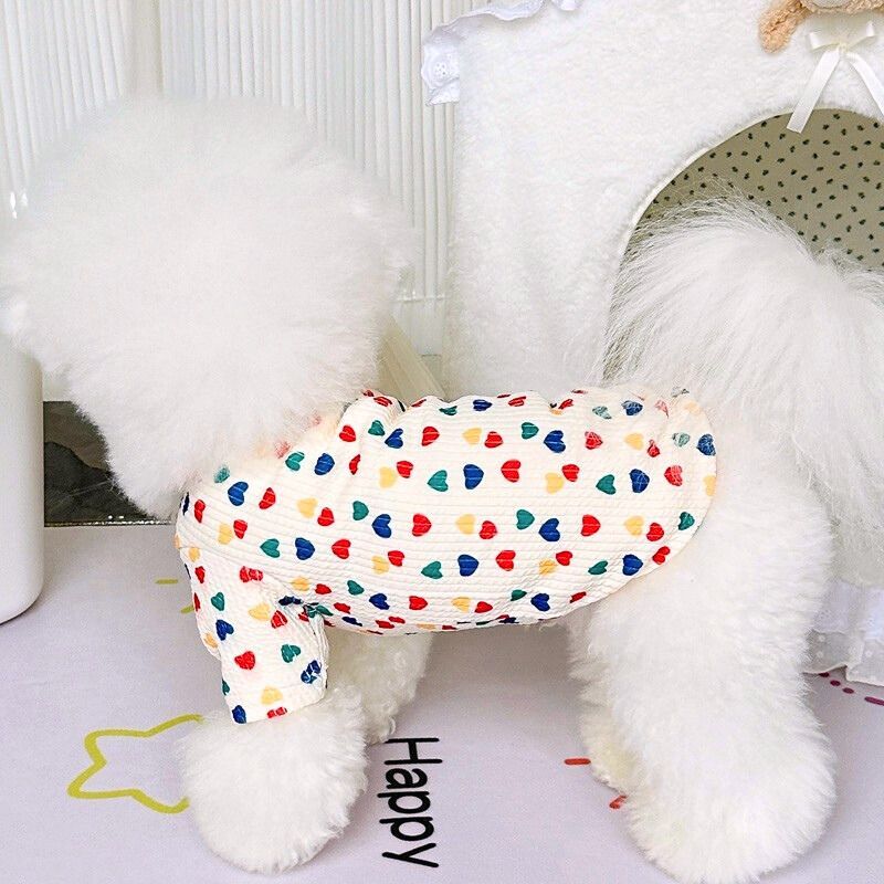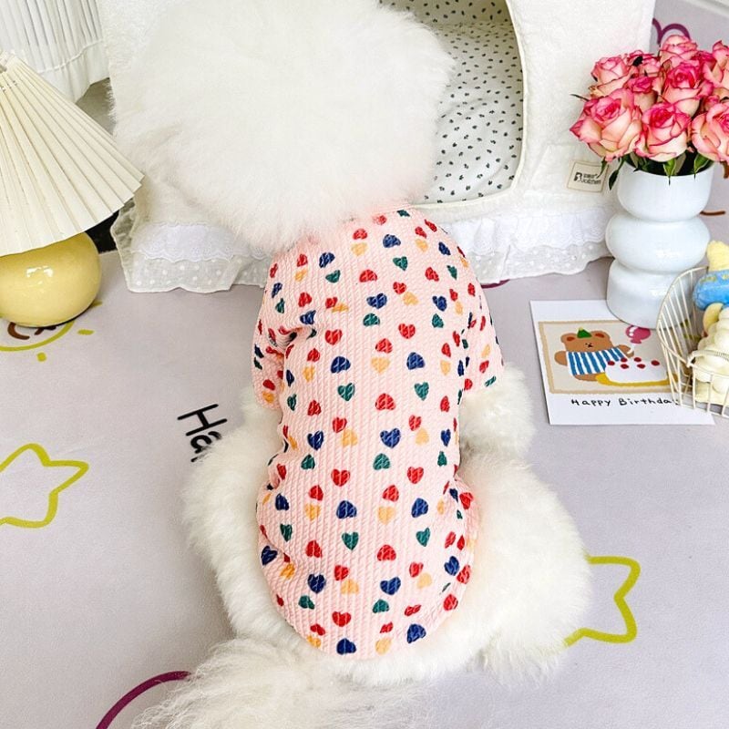 カラフルなハートがちりばめられた、見ているだけで気分が上がるワッフル素材のカットソー。