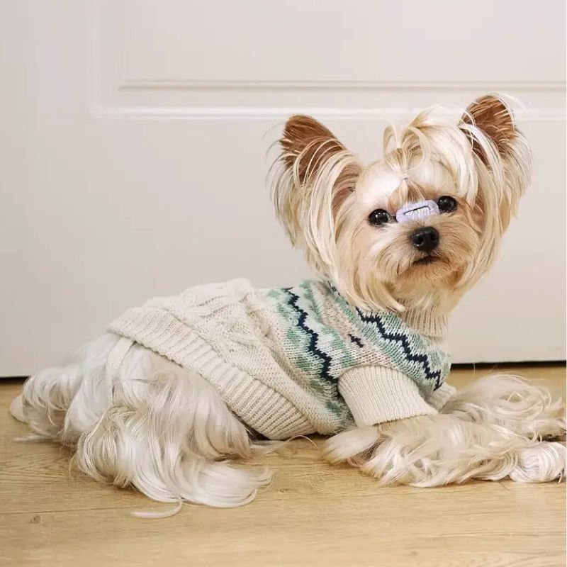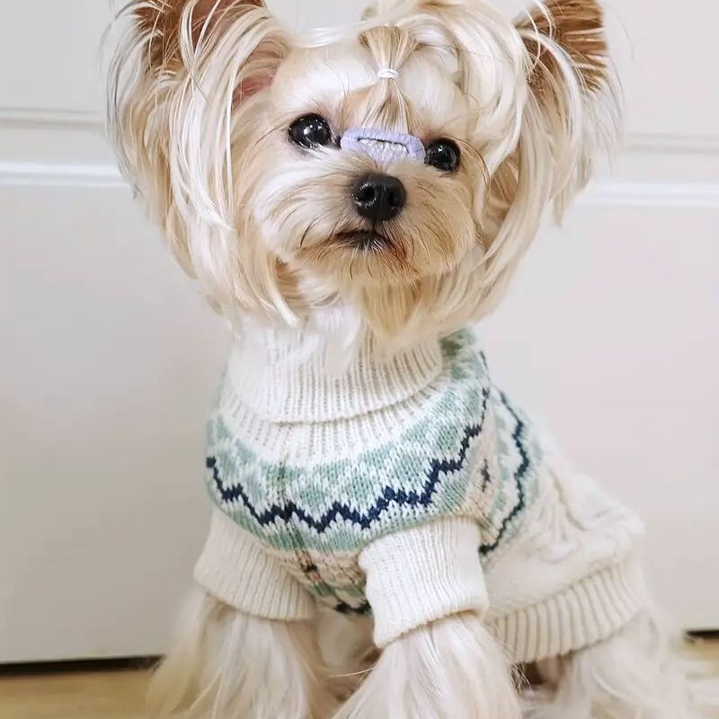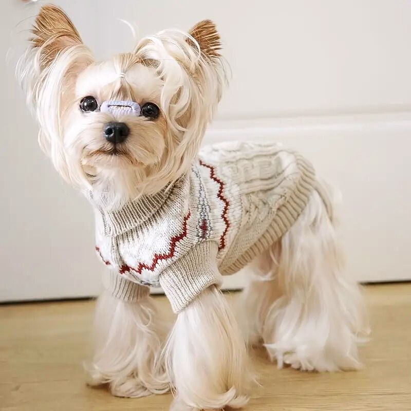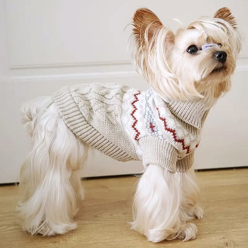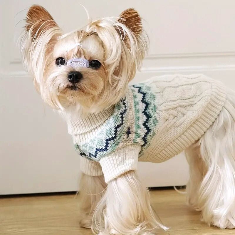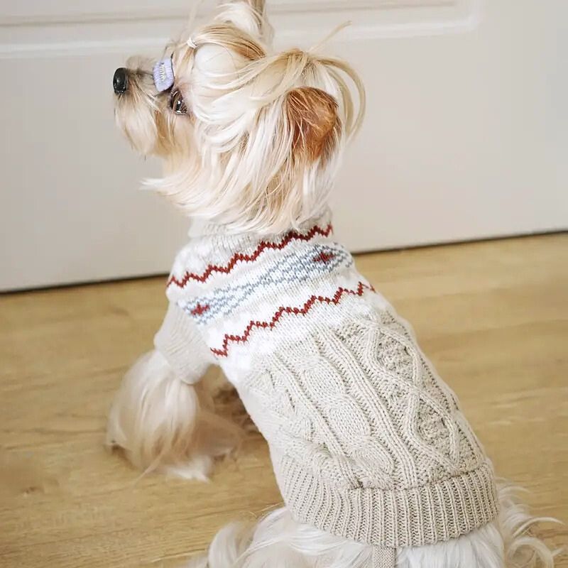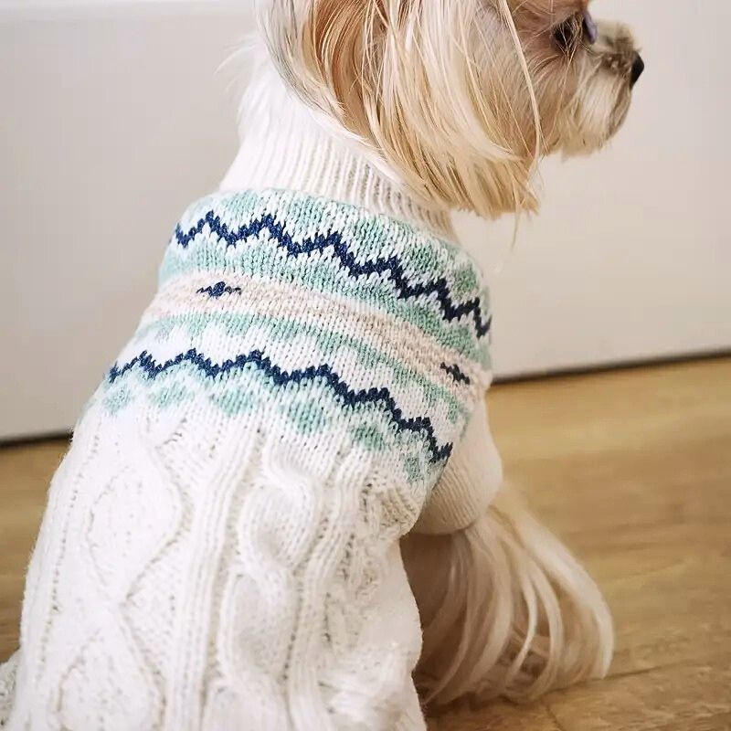 上品なノルディック柄が目を惹く、あったかケーブル編みニット。