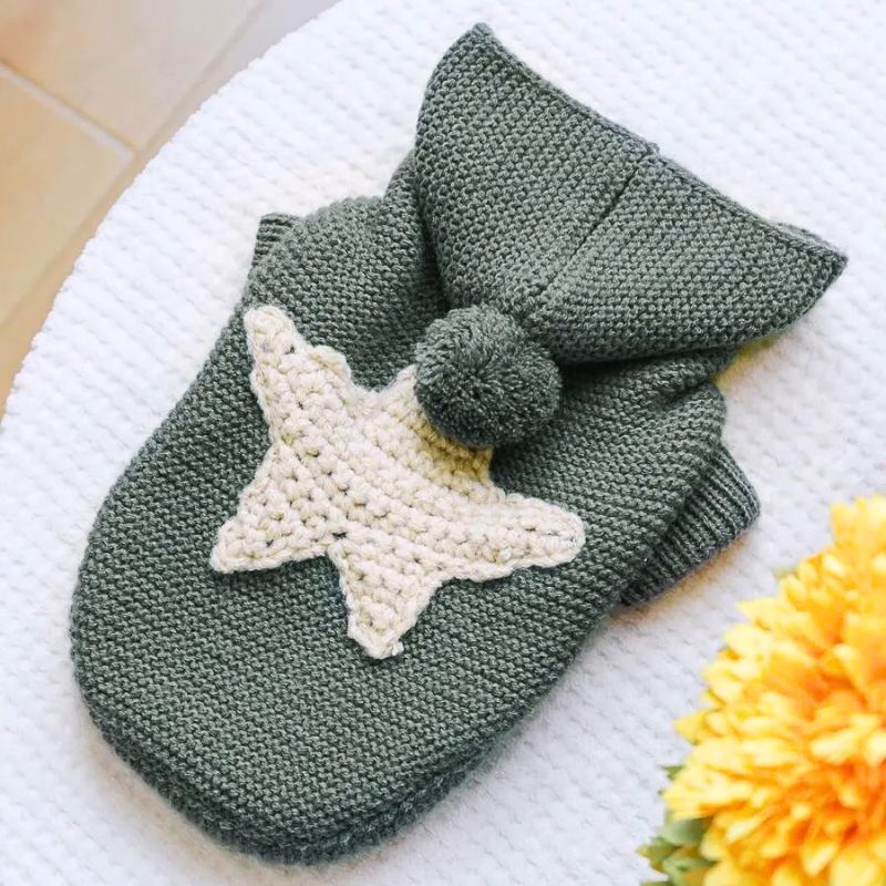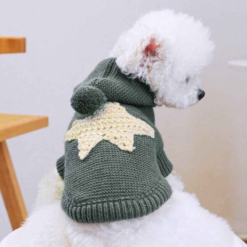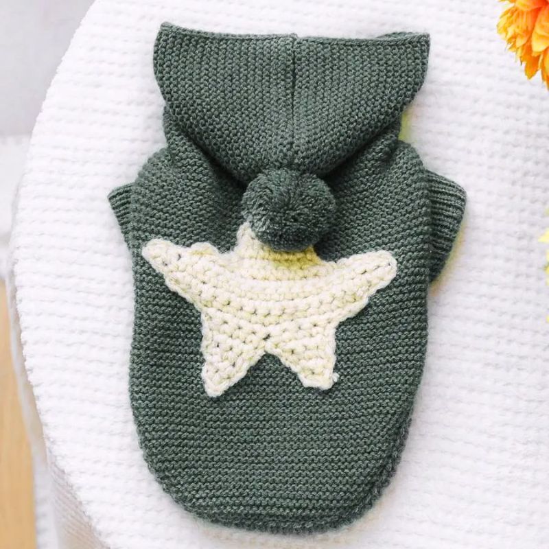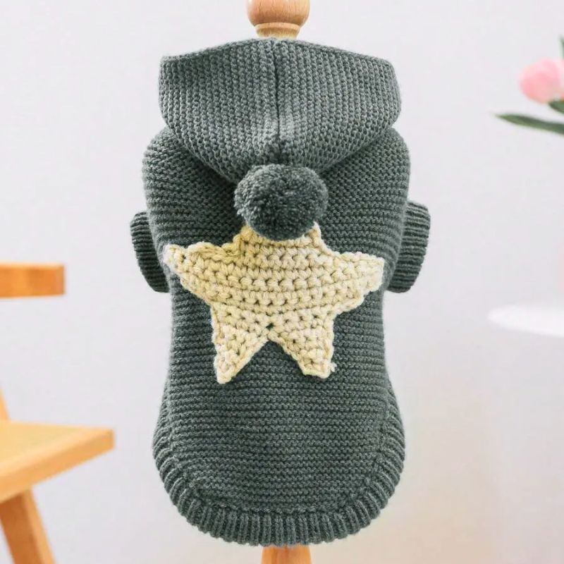 【予約】星モチーフニットパーカー|ポンポン付き犬用秋冬ウェア