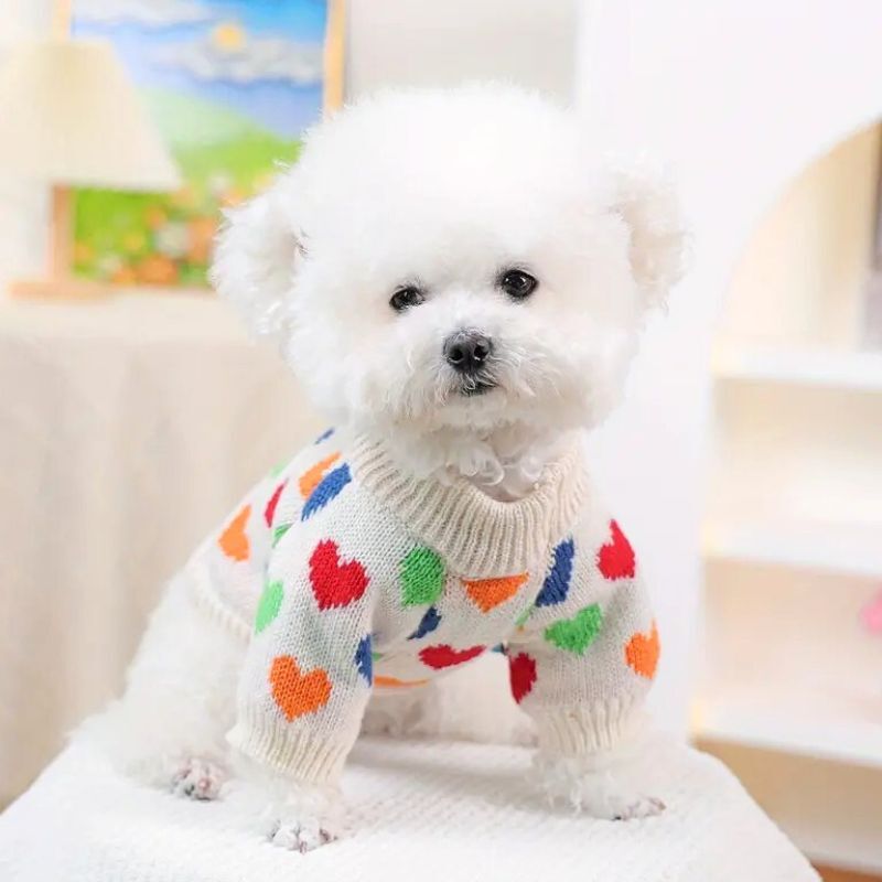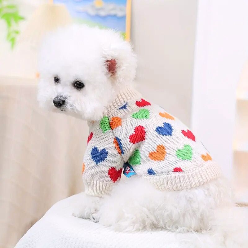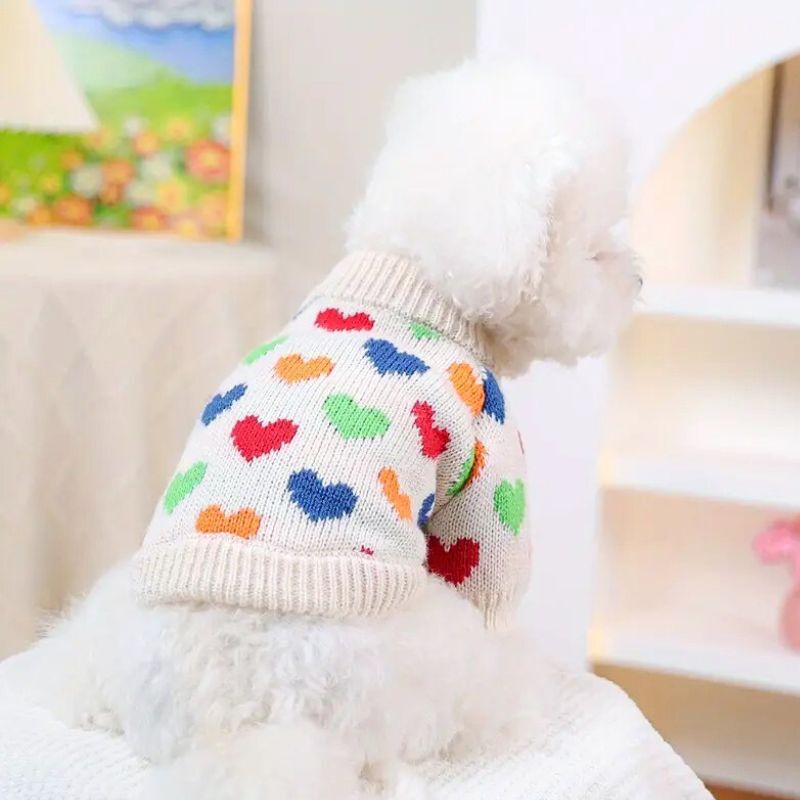 【予約】カラフルなハート柄ニット セーター あったか 防寒
