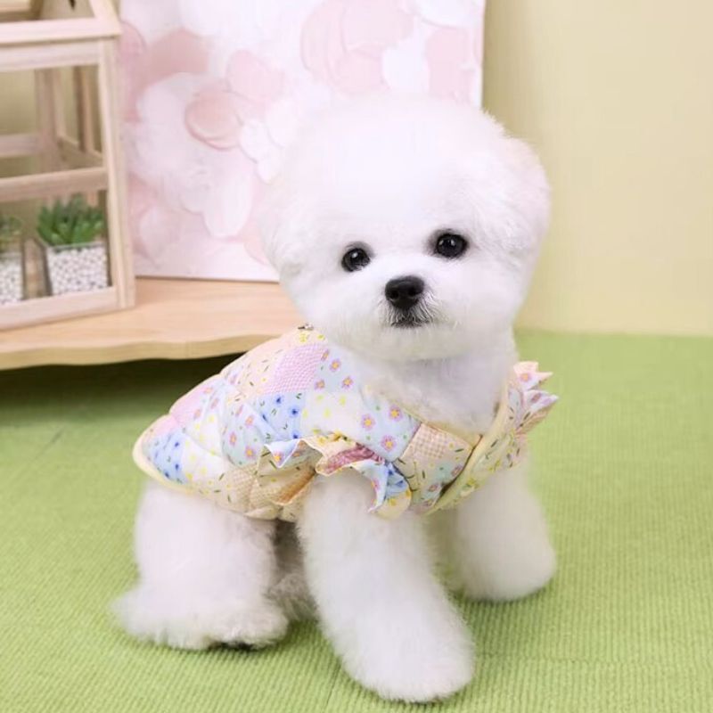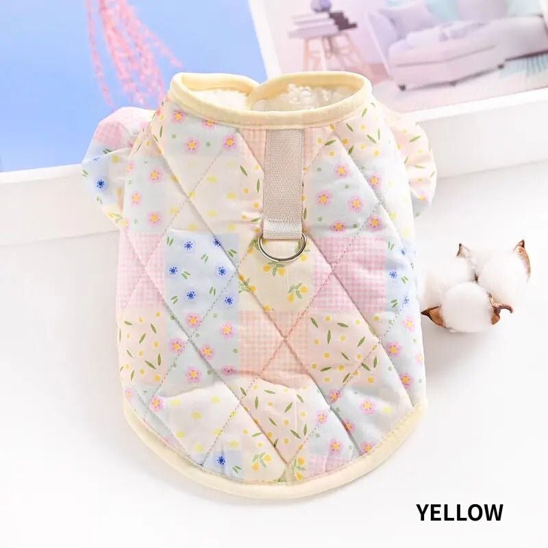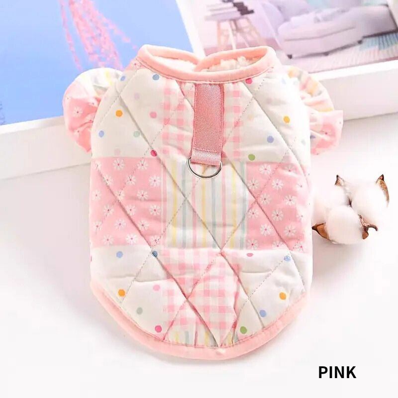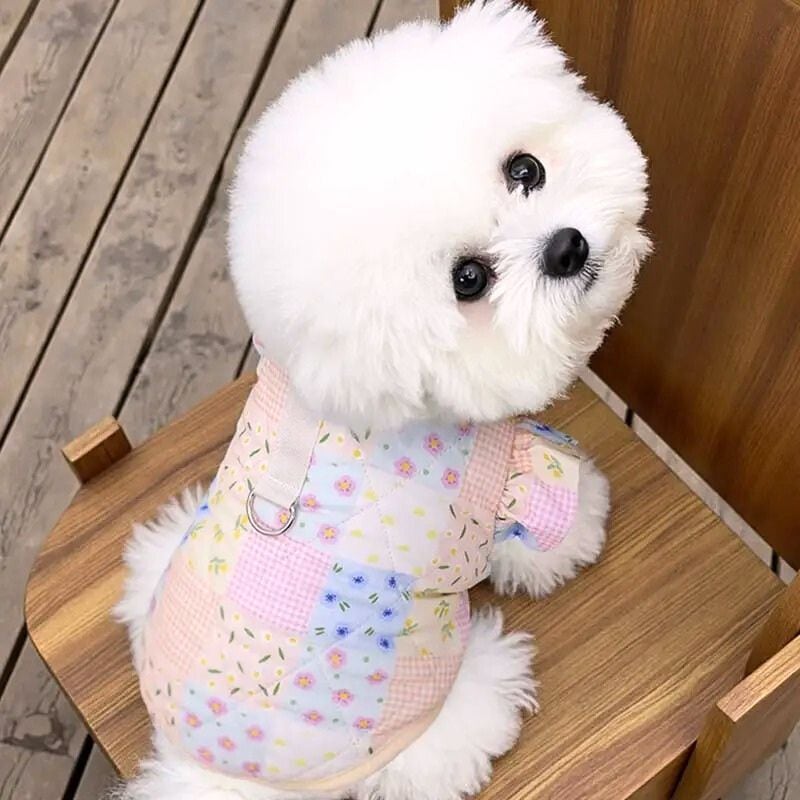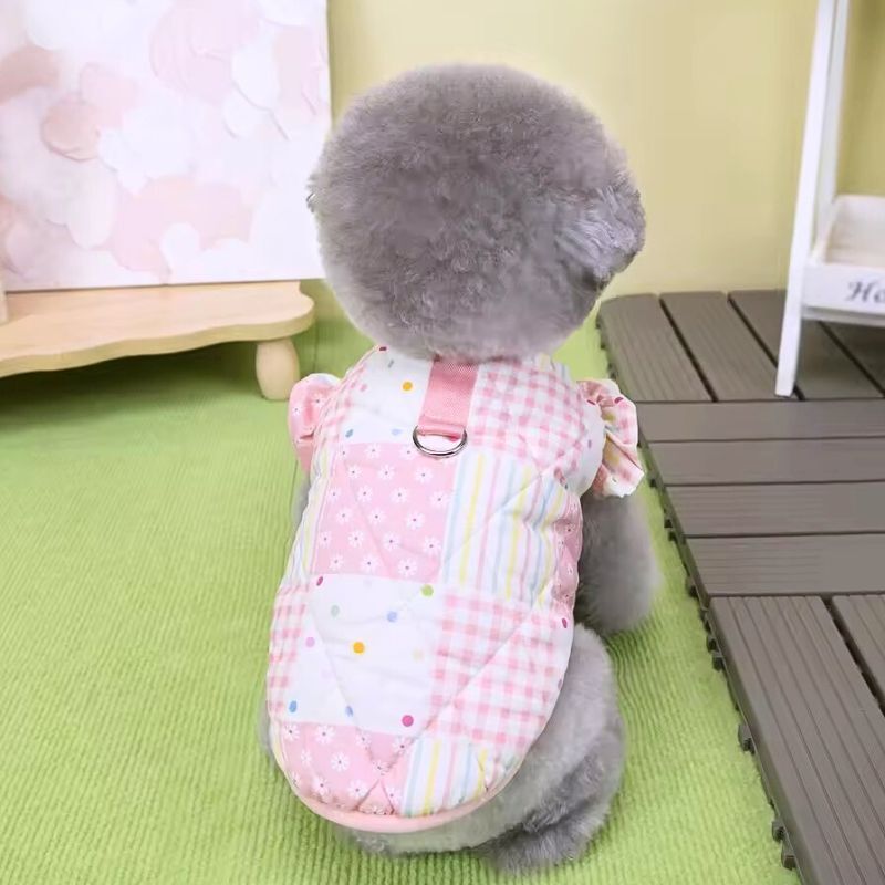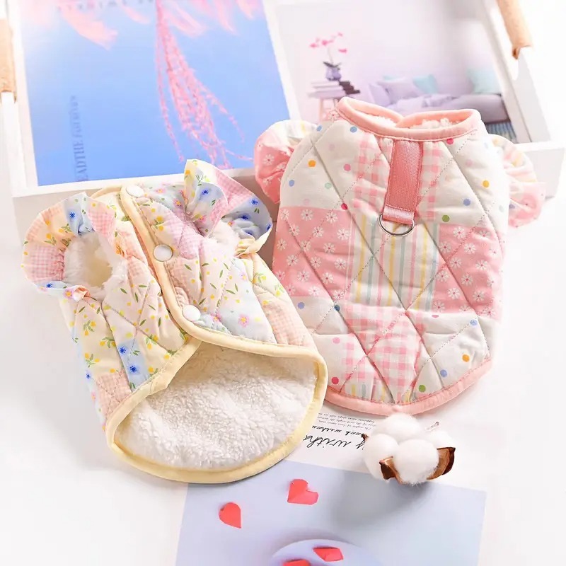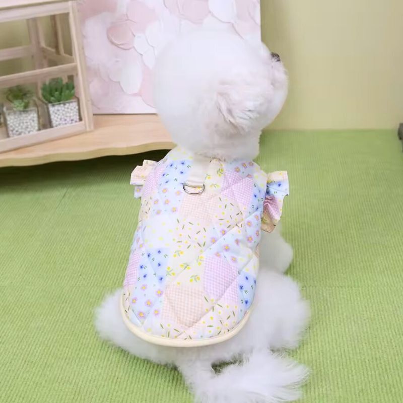色んな柄を組み合わせた愛らしさ満点のあったかベスト!