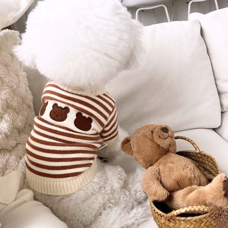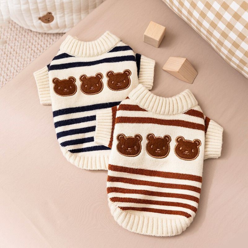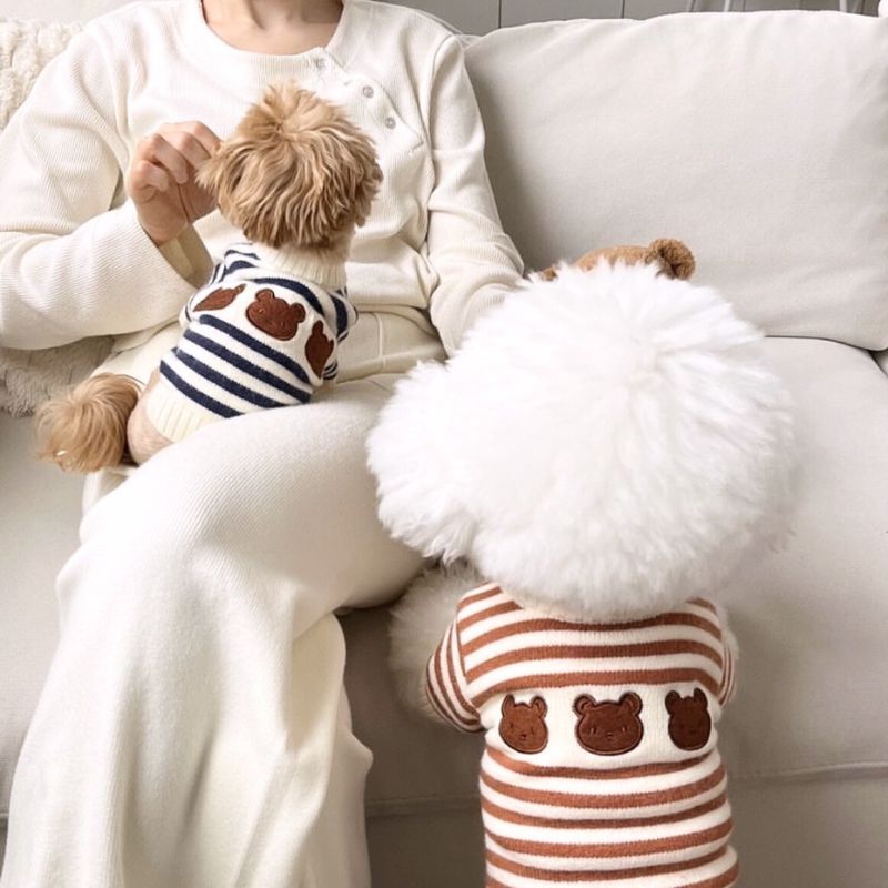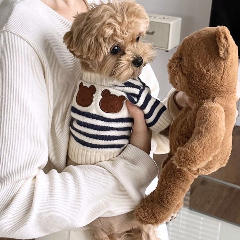 【予約】くまさんボーダーニットセーター|秋冬あったか犬服 小型犬