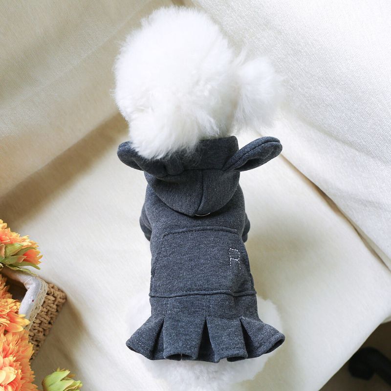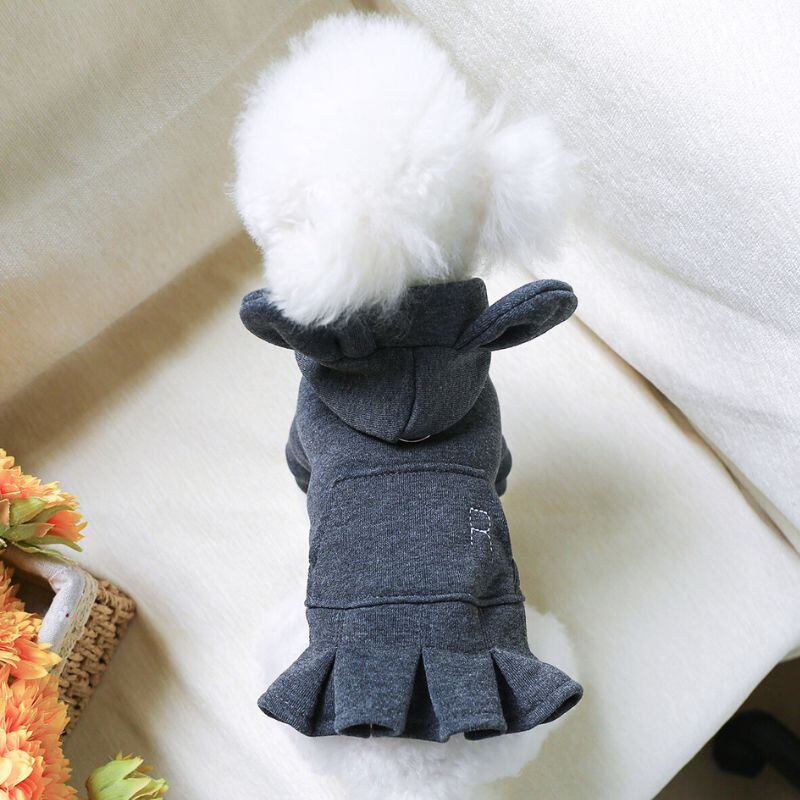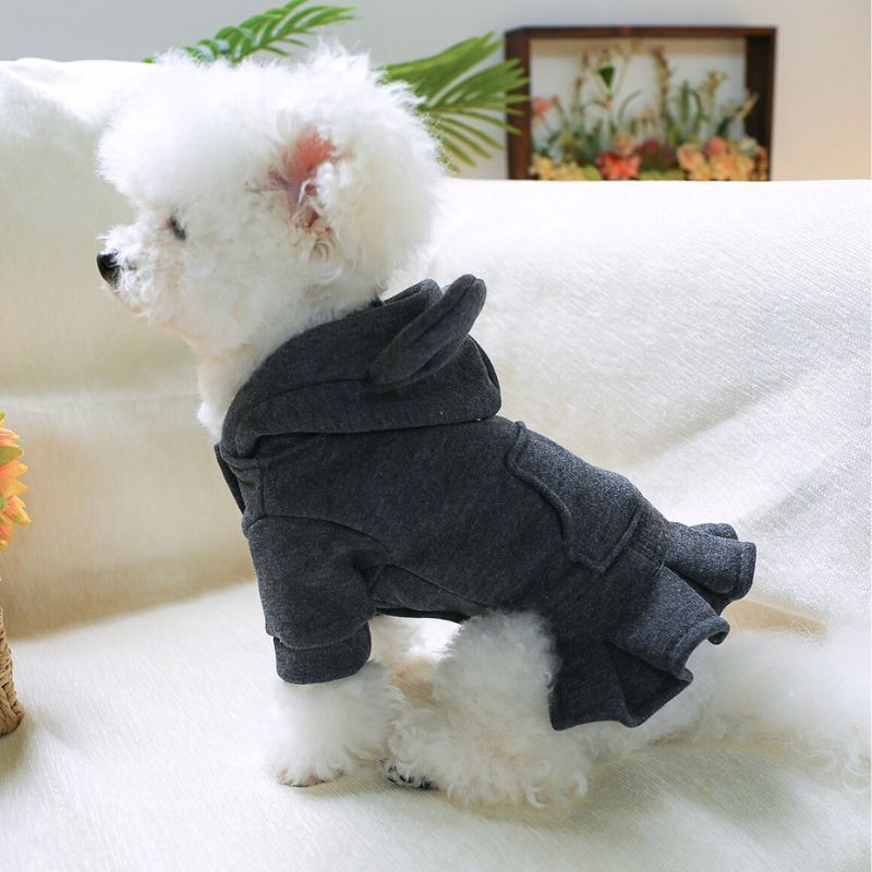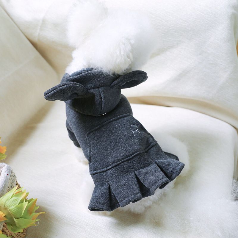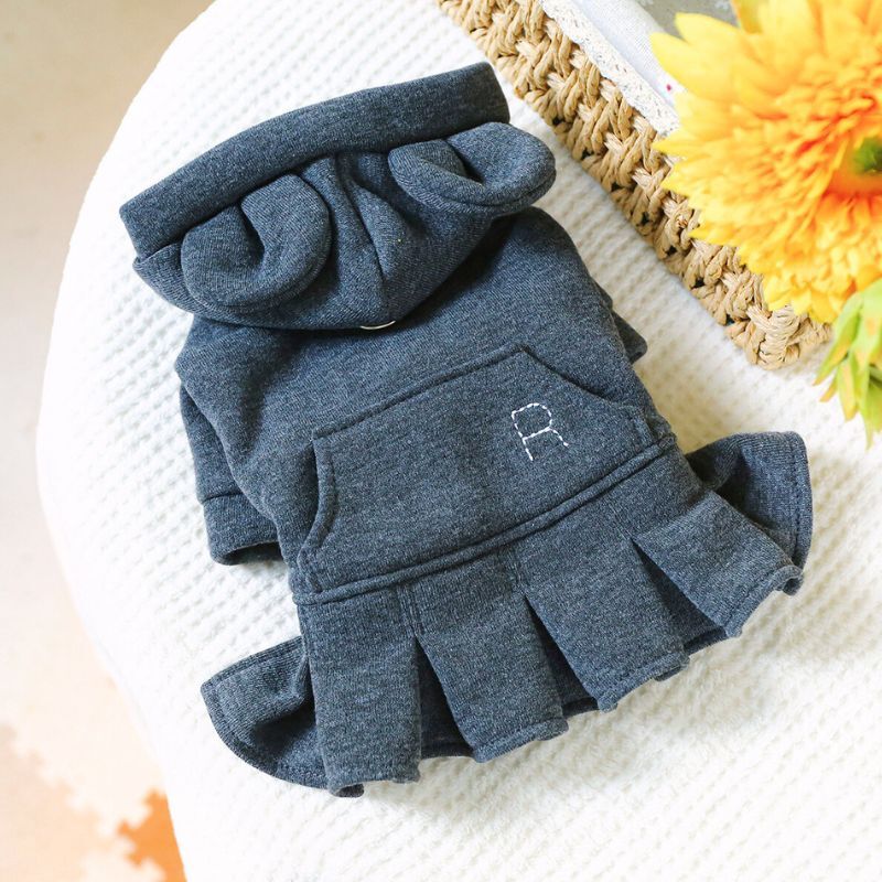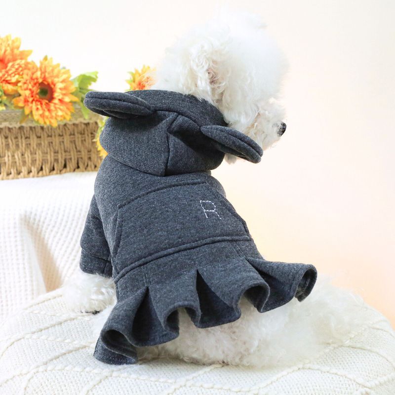 【予約】耳付きフードのスウェットワンピース||秋冬ドッグウェア 小型犬用