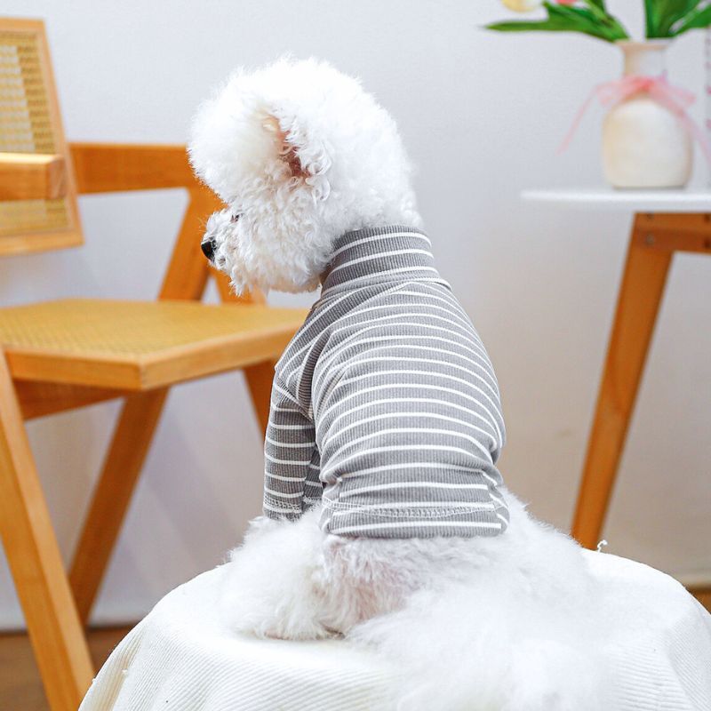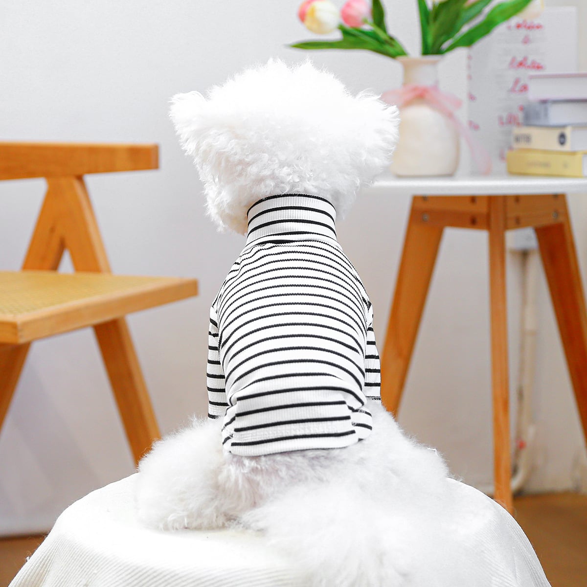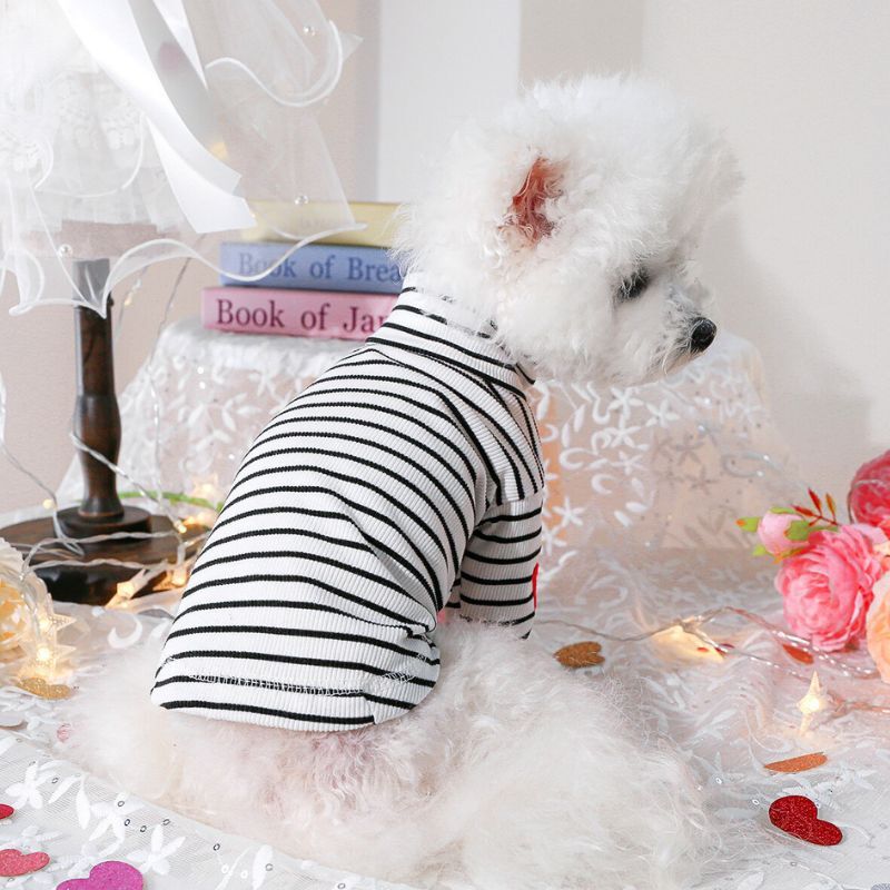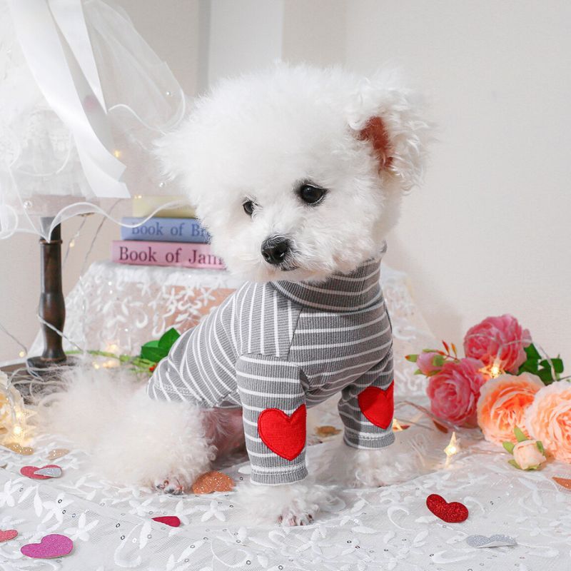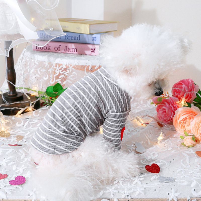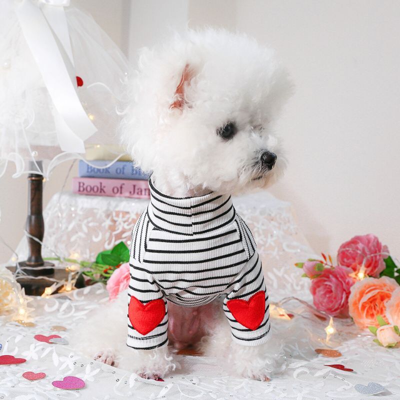 【予約】ハートワッペン付き ハイネックボーダーロングTシャツ|伸縮リブ素材・小型犬用