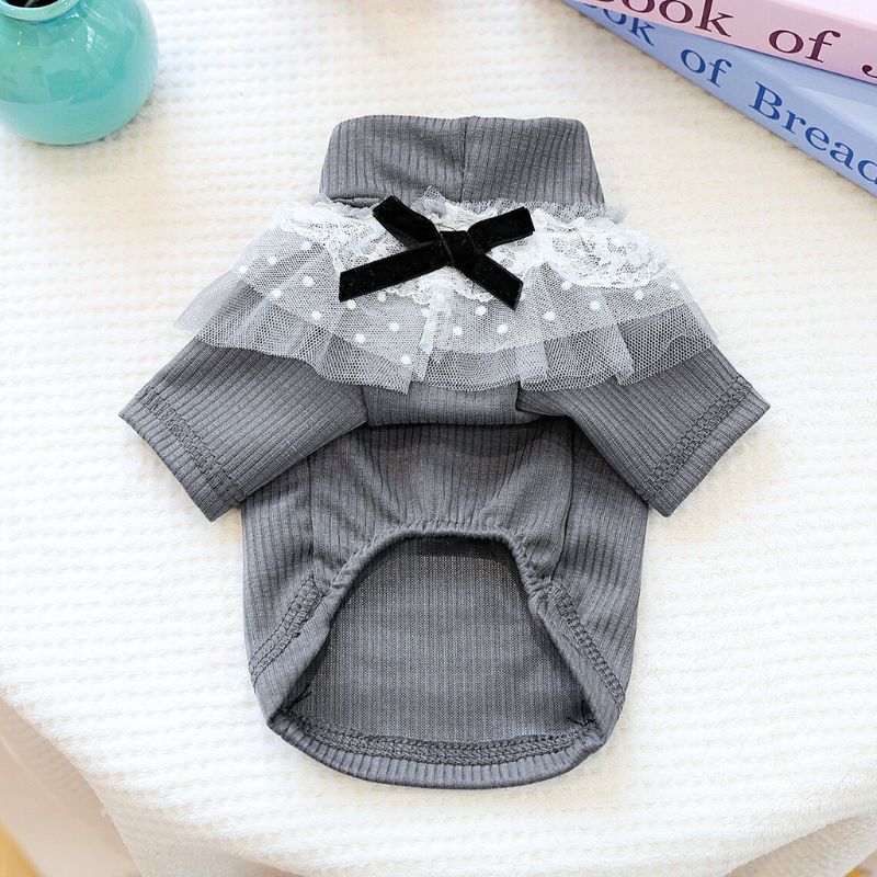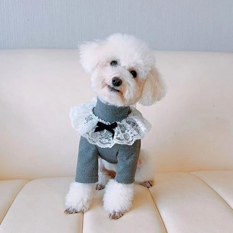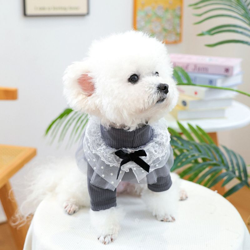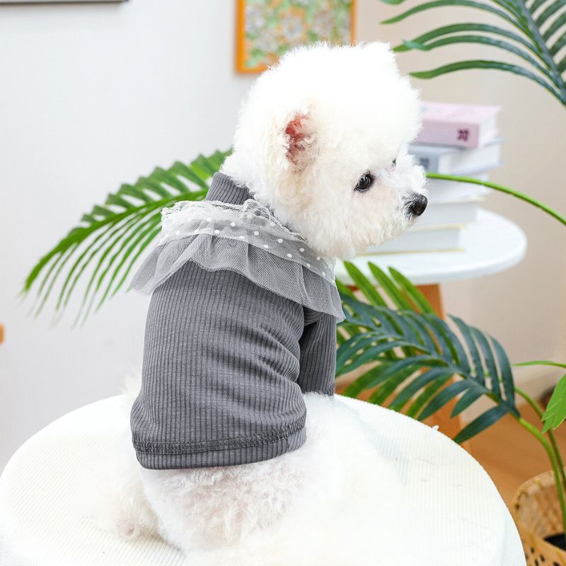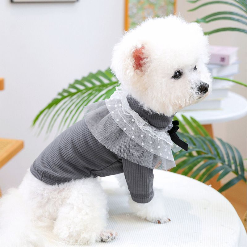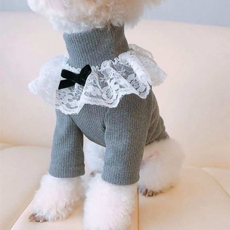【予約】フリルレース付きリブタートルロンパース|小型犬用冬服