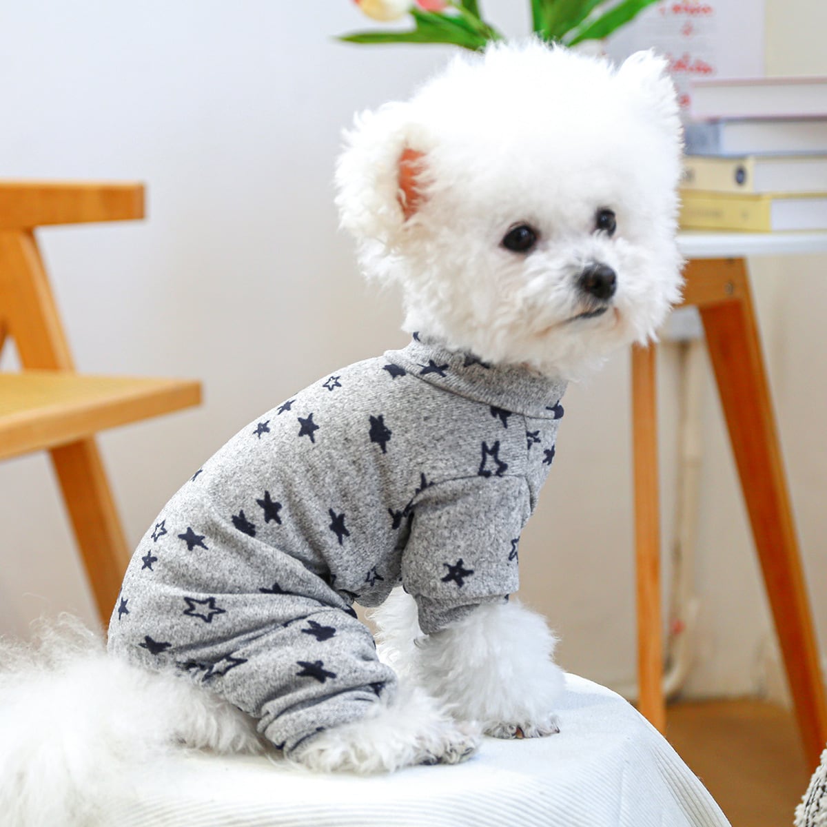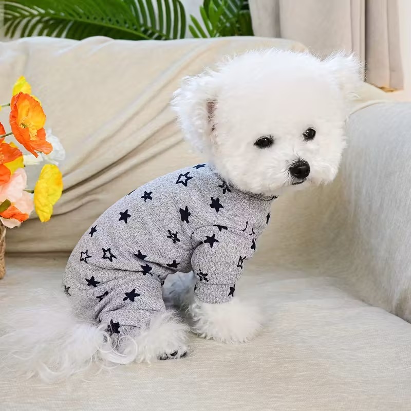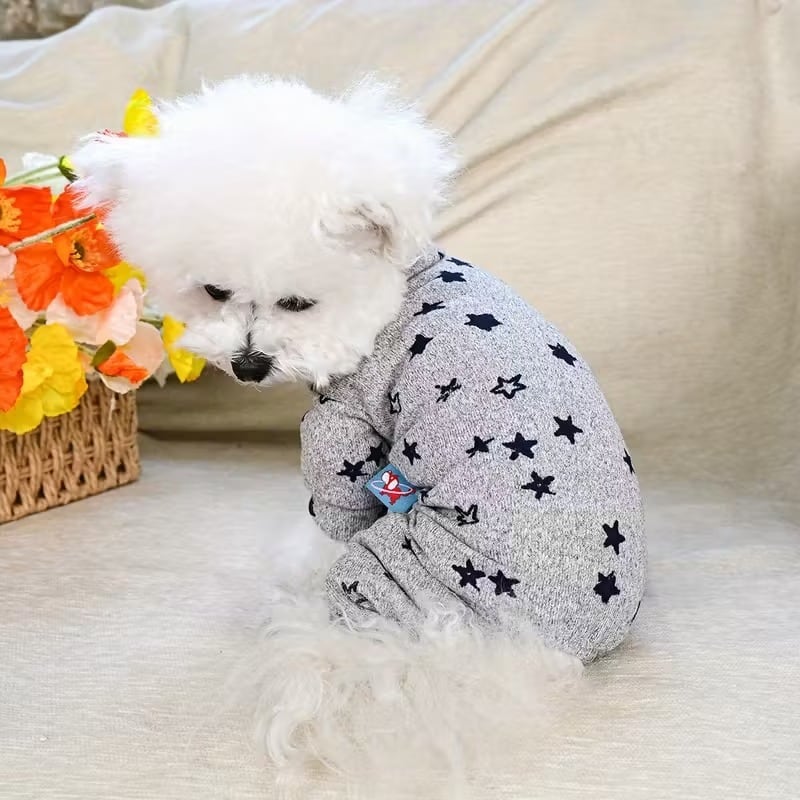 【予約】星柄ロンパース|あったか犬服 部屋着 抜け毛対策