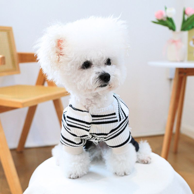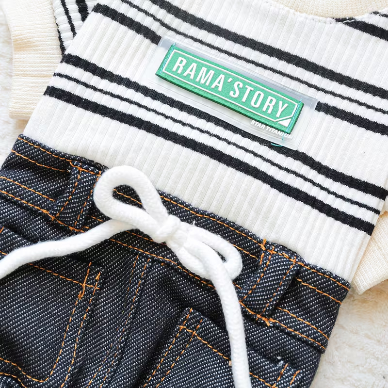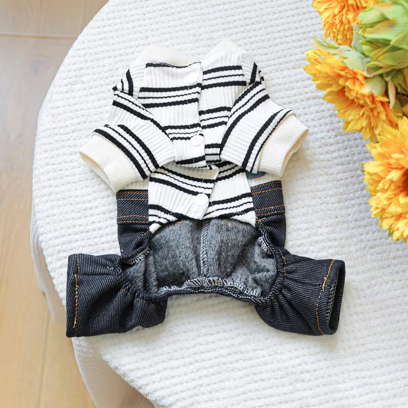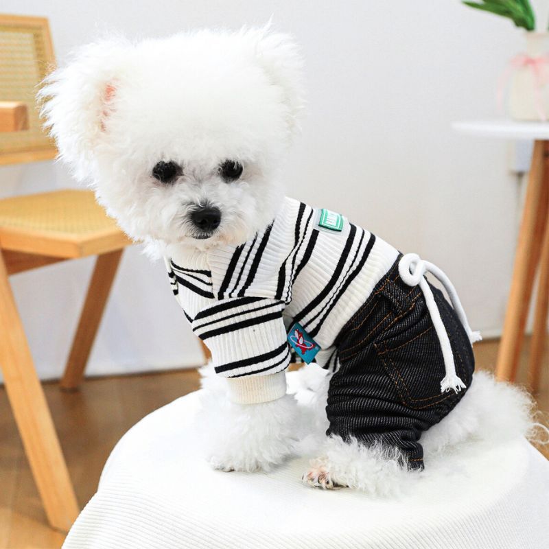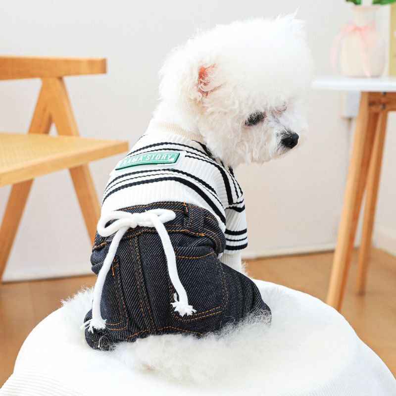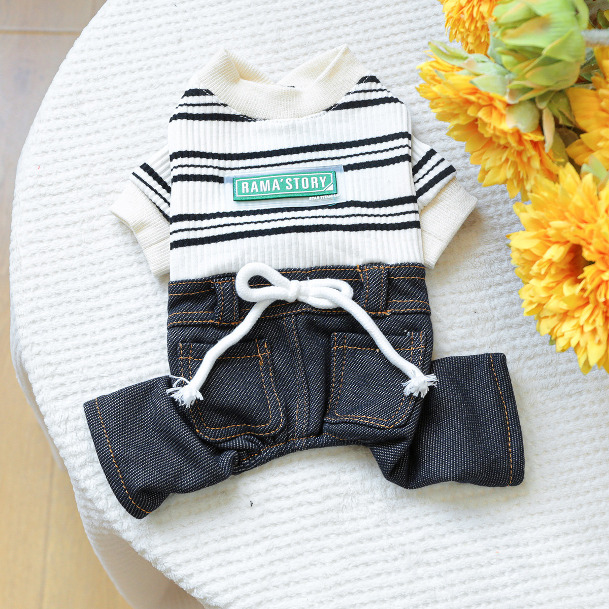 【予約】ボーダー×デニム風オールインワン 犬服|カジュアルドッグウェア
