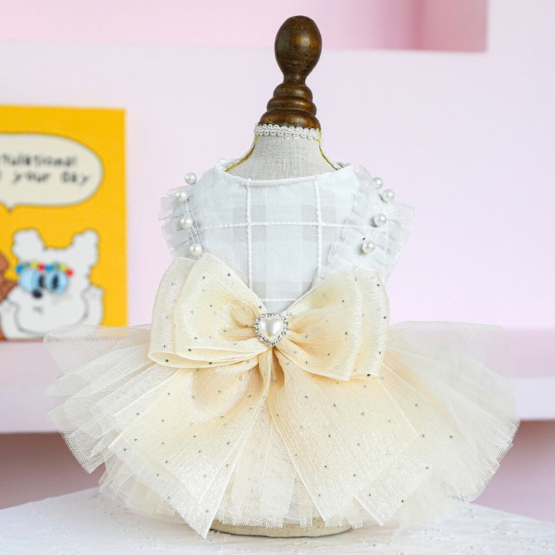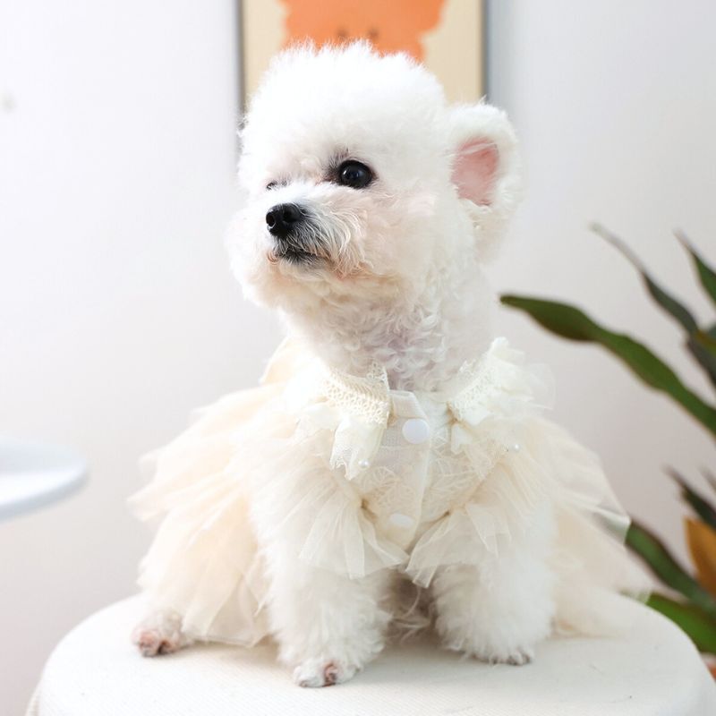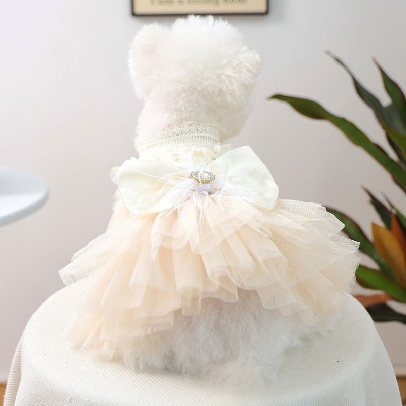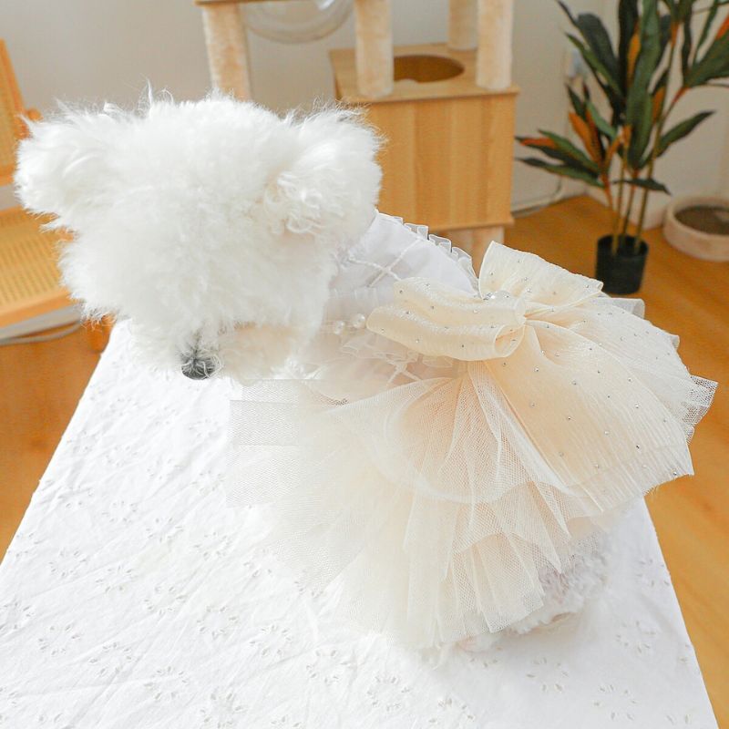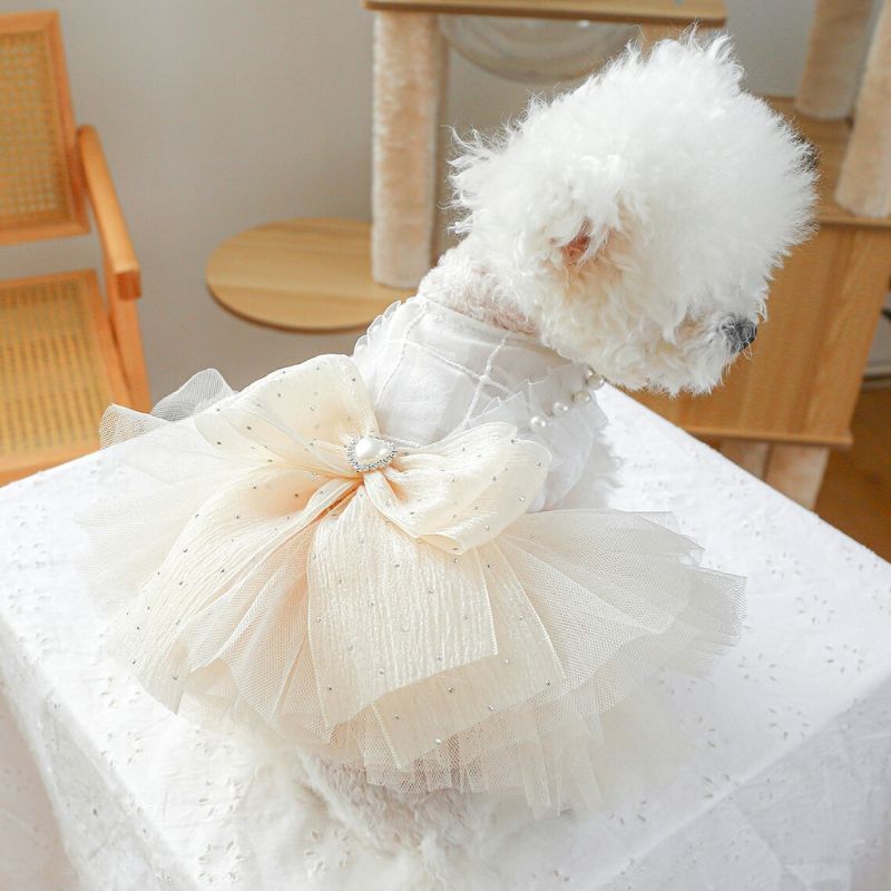 【予約】犬服 チュールドレスワンピース リボン付き フリル 上品 お姫様ドレス 記念日 撮影会 結婚式 小型犬用