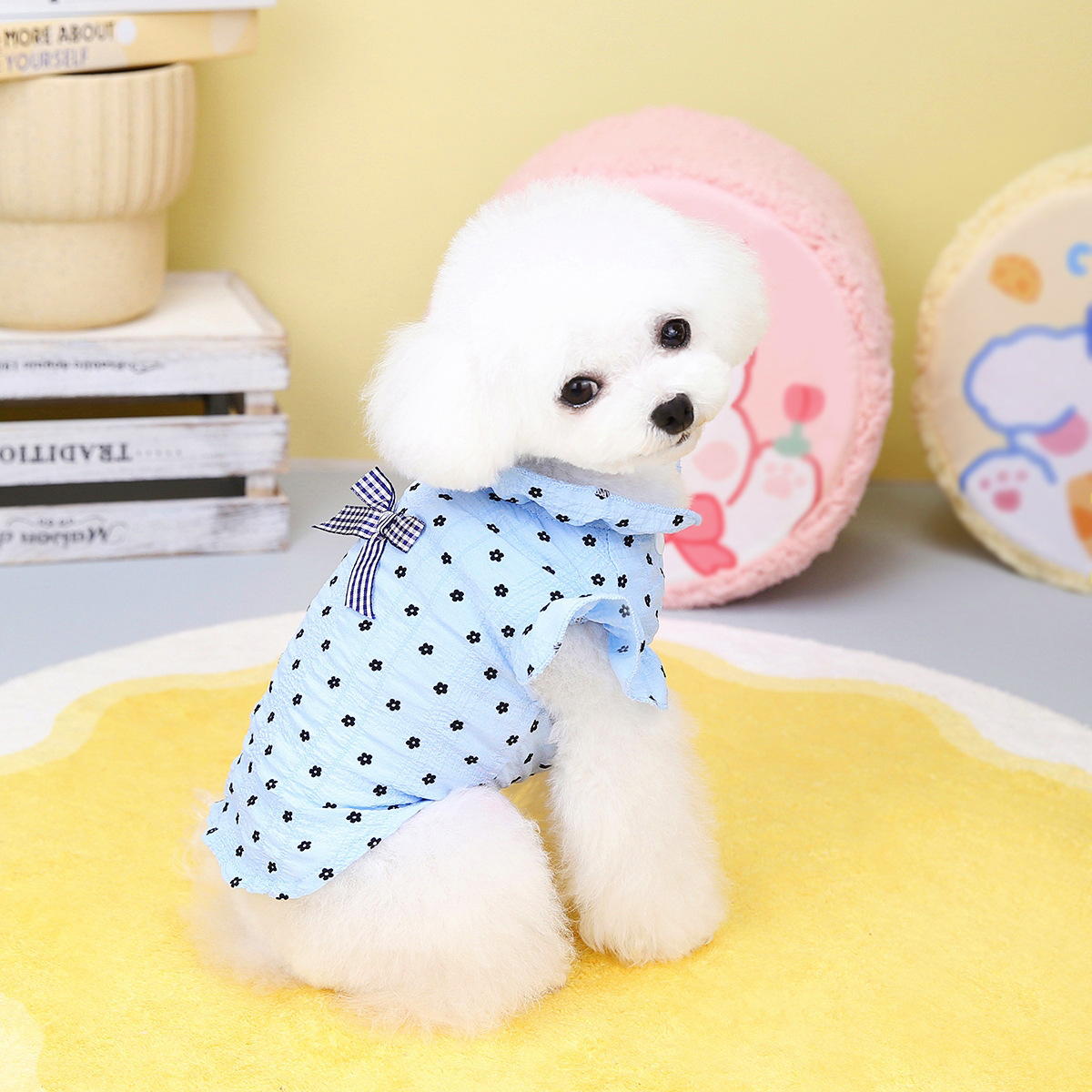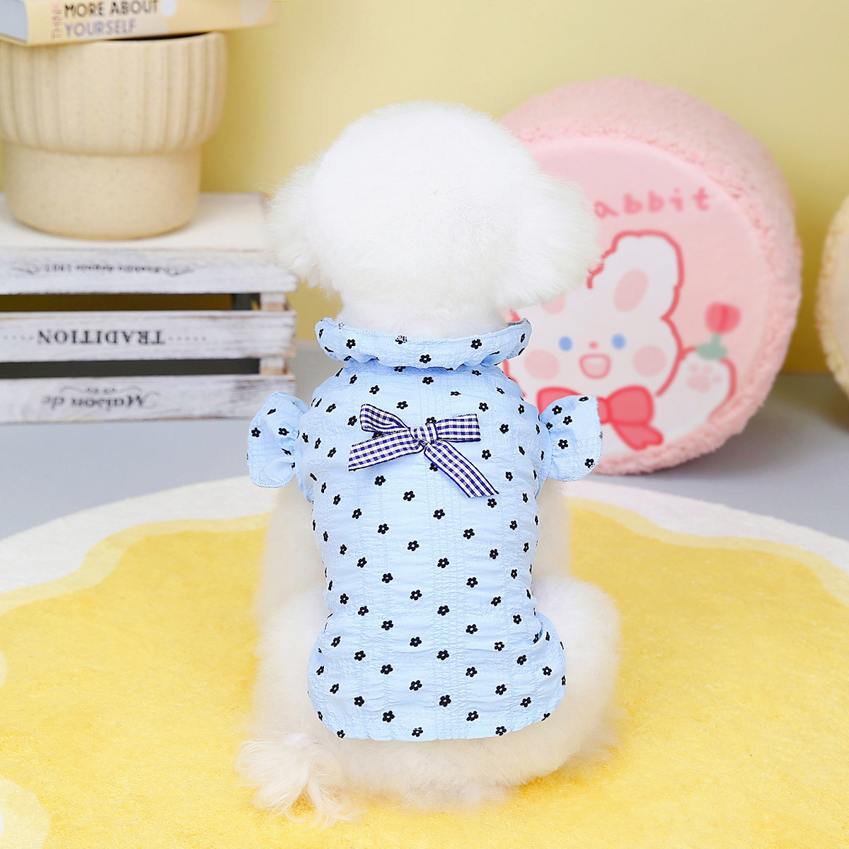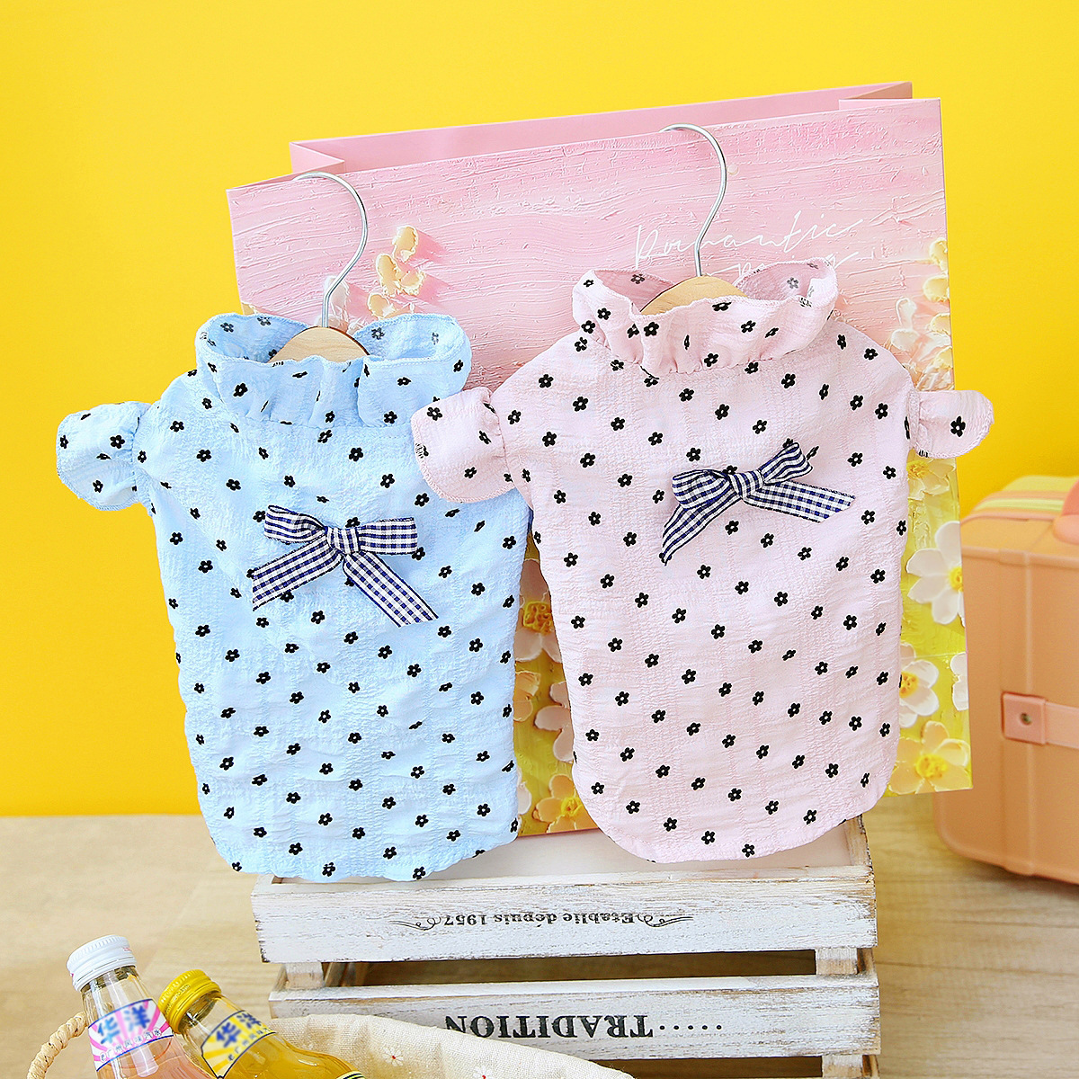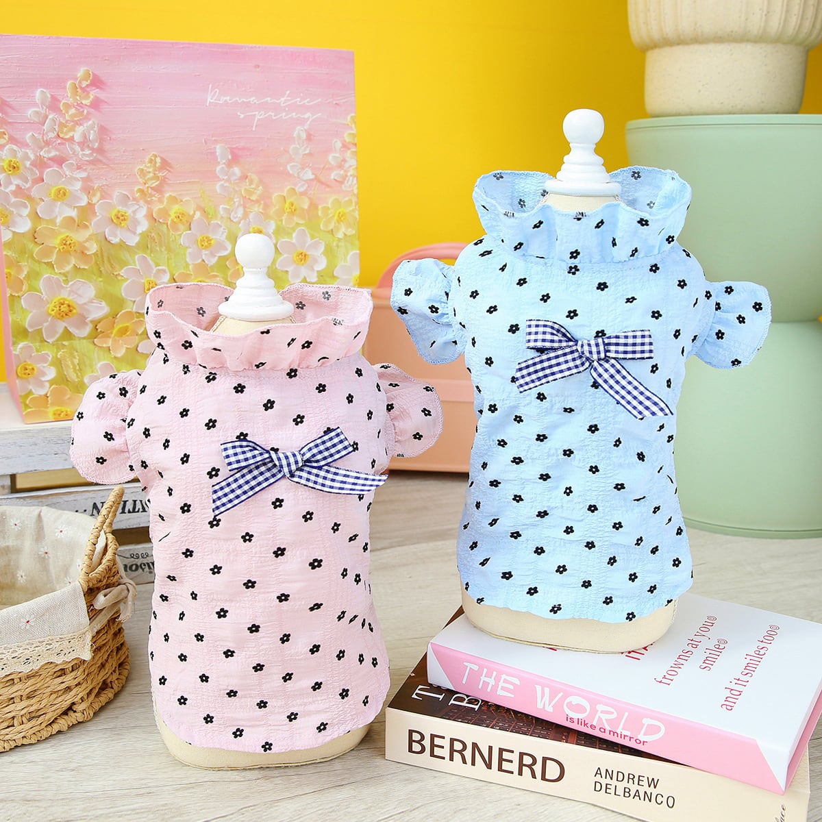 【予約】小花柄リボン付きブラウス 犬服 春夏用 半袖トップス かわいい 小型犬用 軽量ドッグウェア