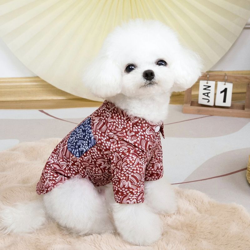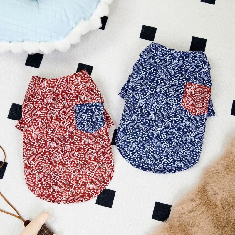 【予約】和柄デザインシャツ 春夏用ドッグウェア 小型犬用 おしゃれ ポケット付き