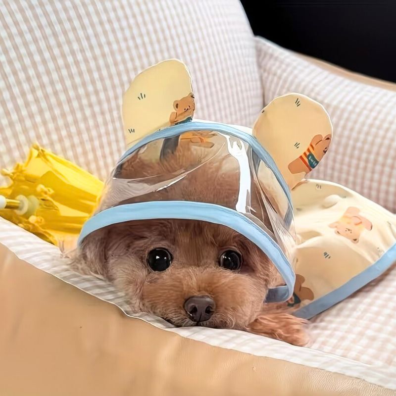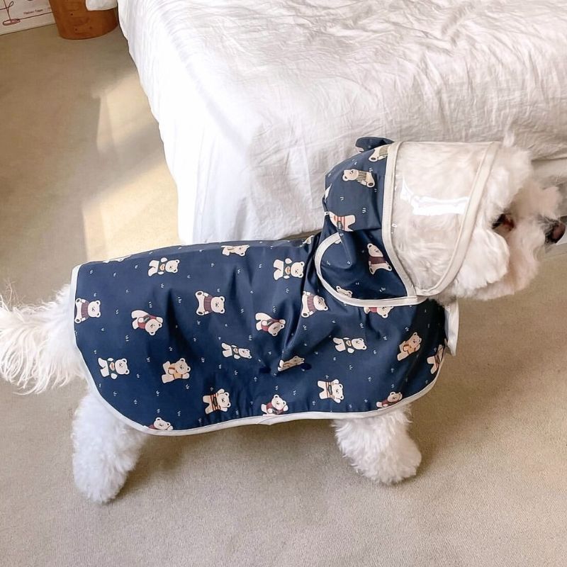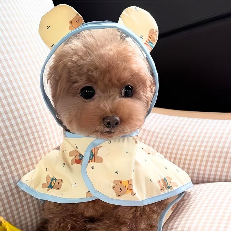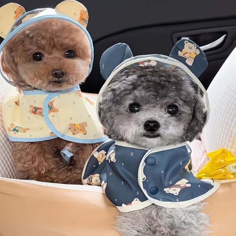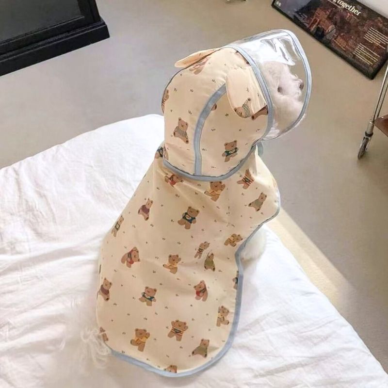 お耳付き くま柄撥水レインコート/小型犬用 かわいい雨具