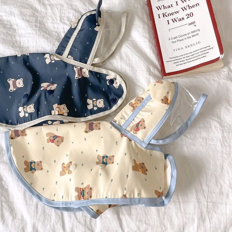 雨の日のお散歩が楽しみになるくま柄×耳付きフードのレインコート。
