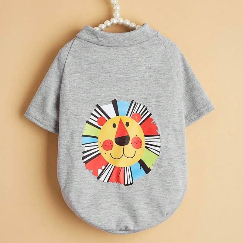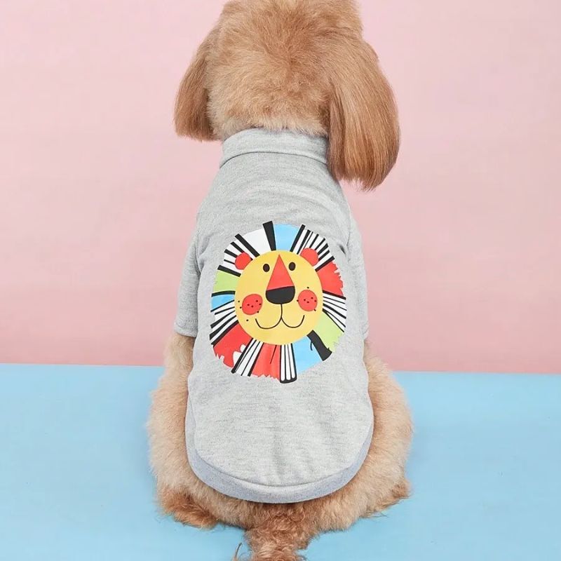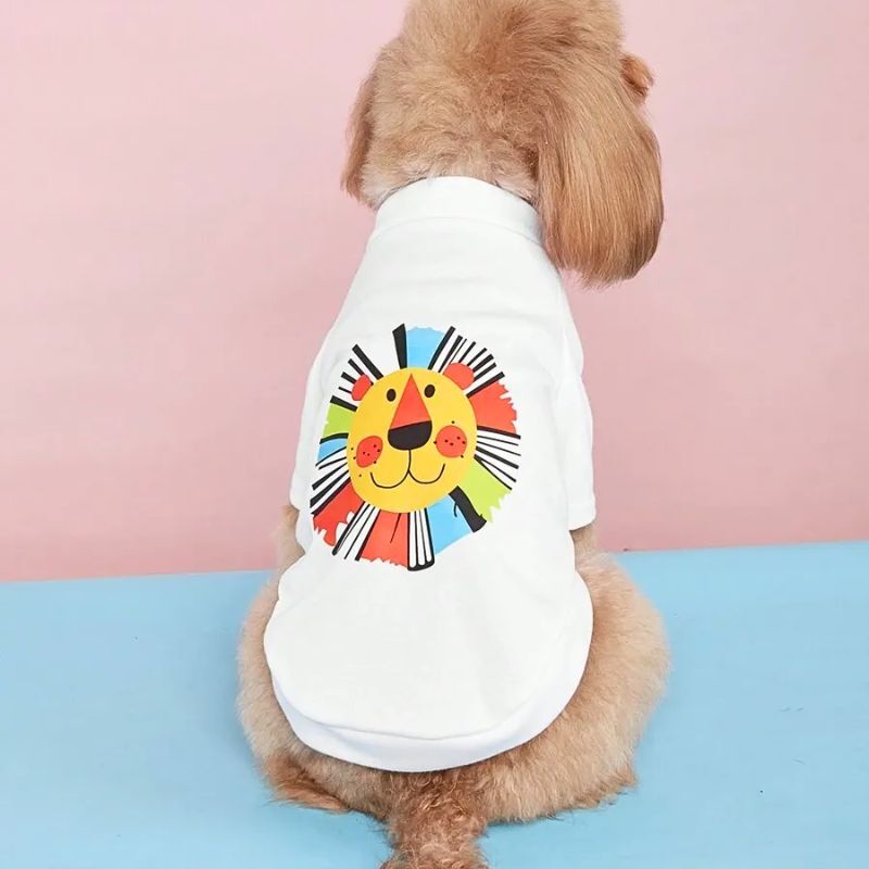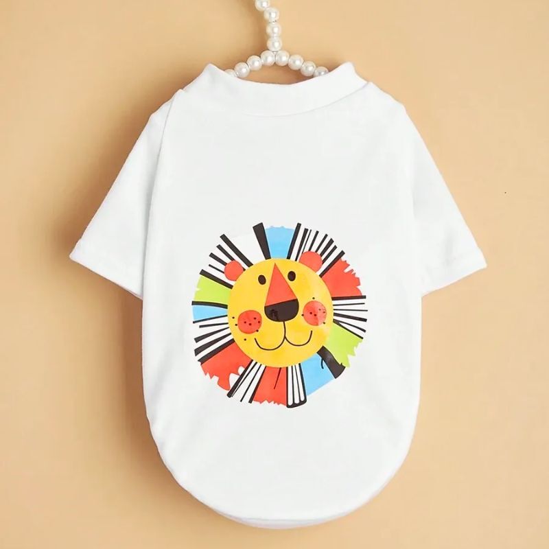 【予約】カラフルライオンプリント半袖Tシャツ|春夏用ポップ犬服・小型犬用トップス