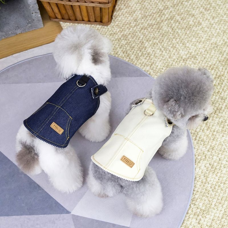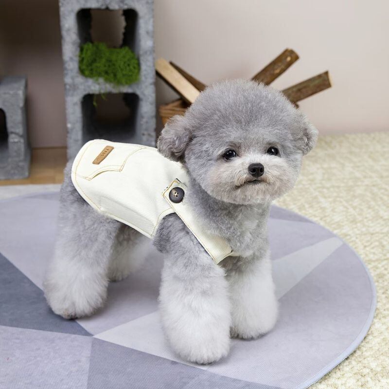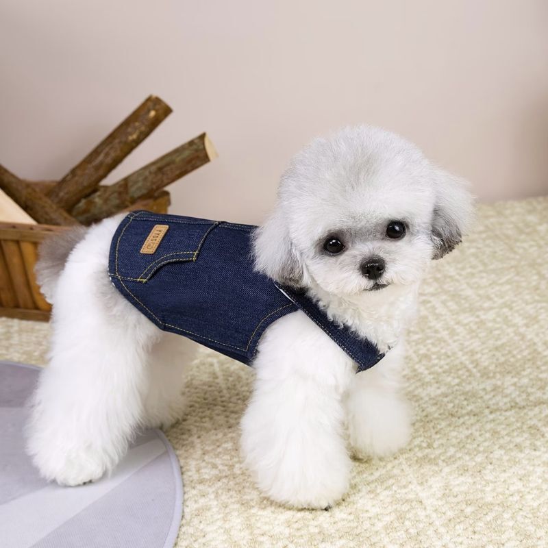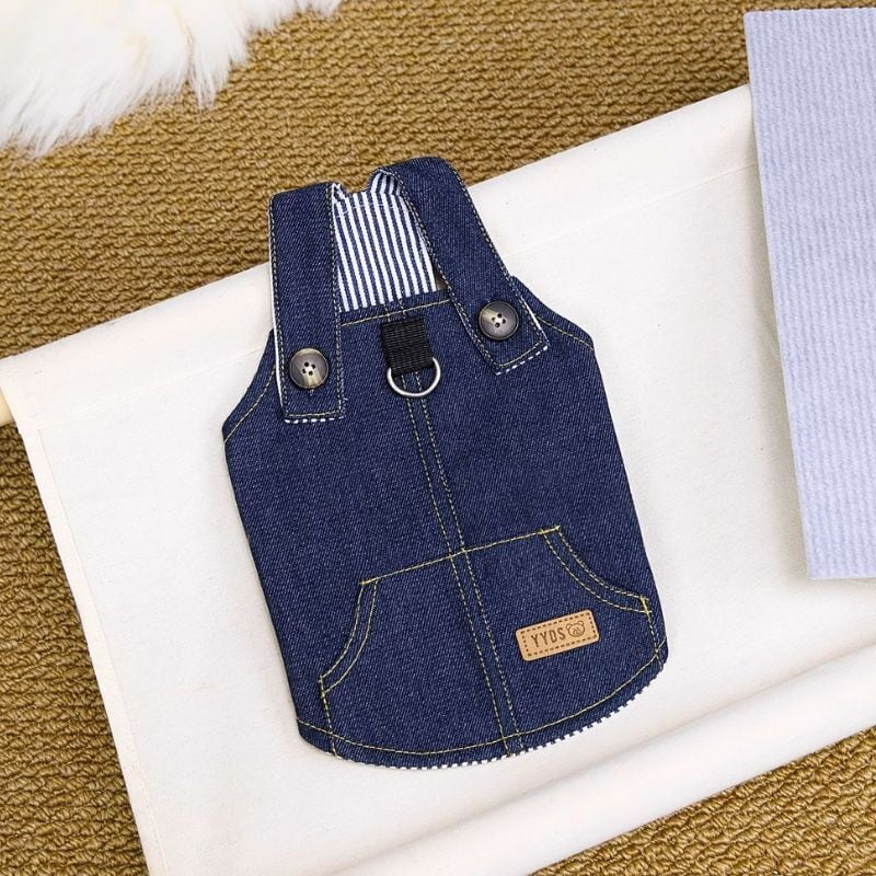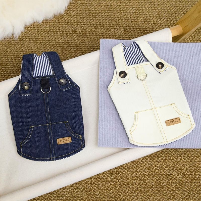【予約】デニムサロペット|お散歩対応・Dカン付き犬服(小型犬用)