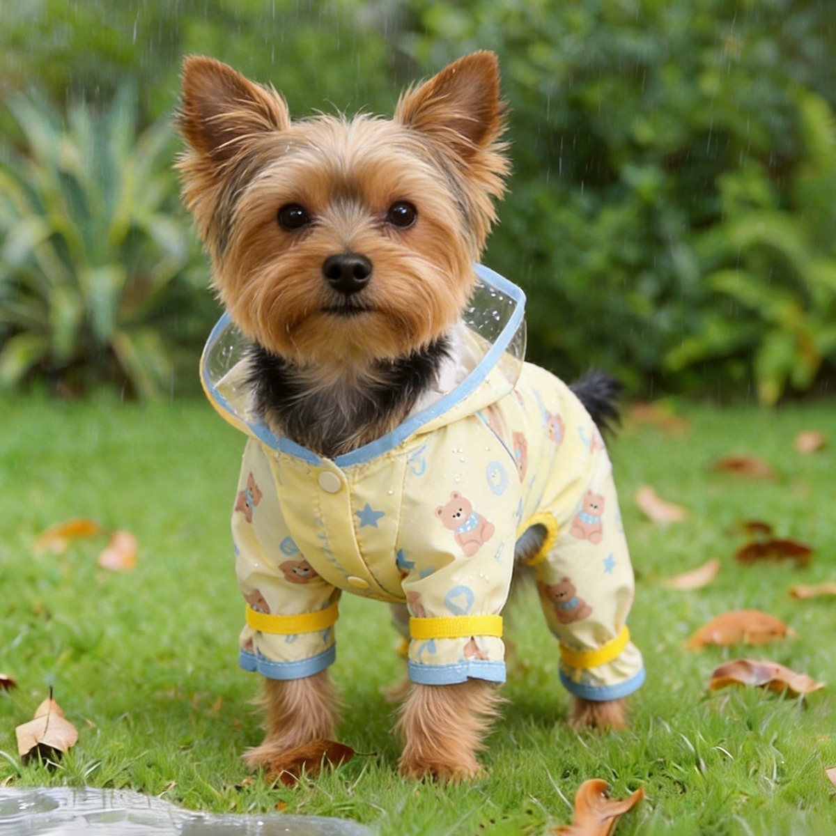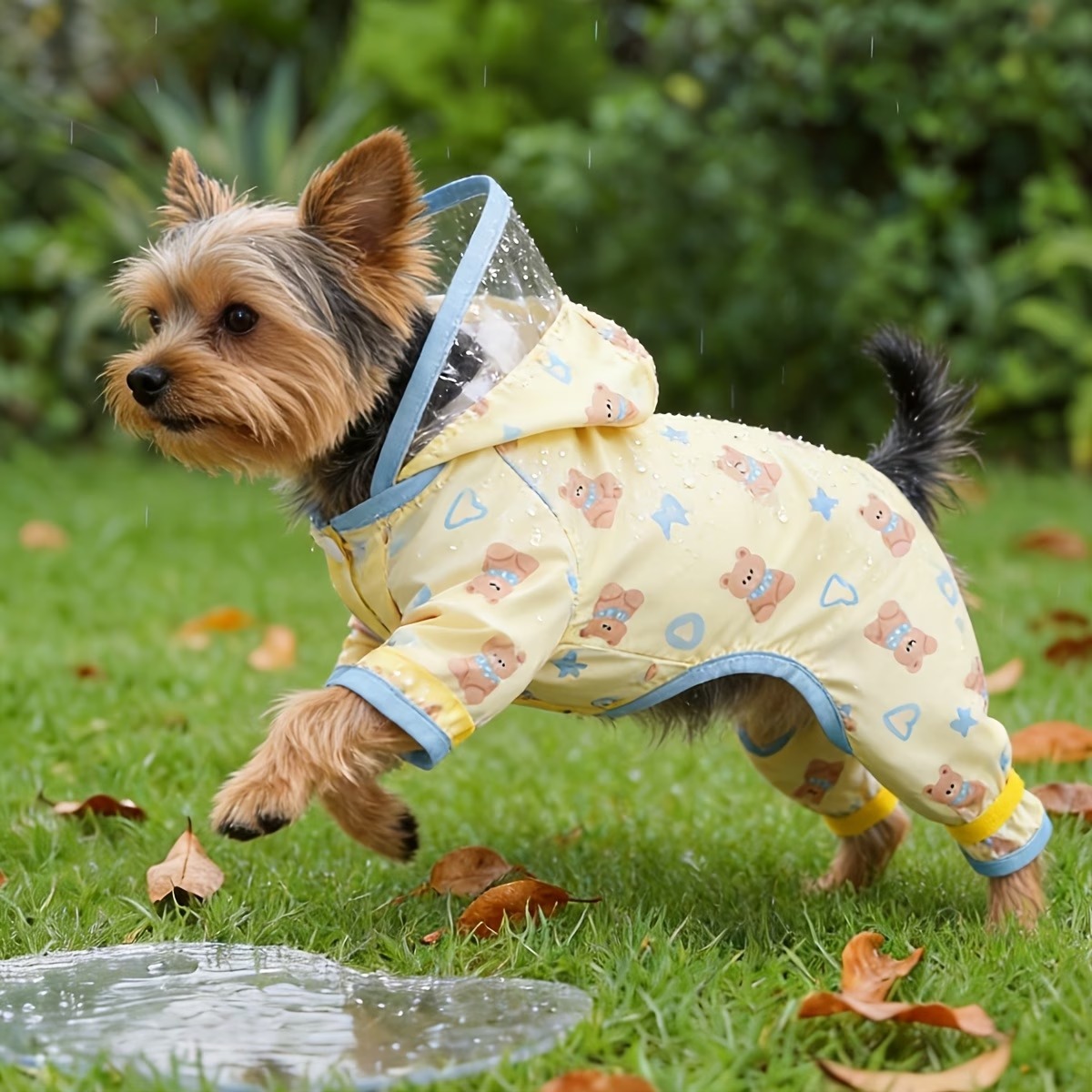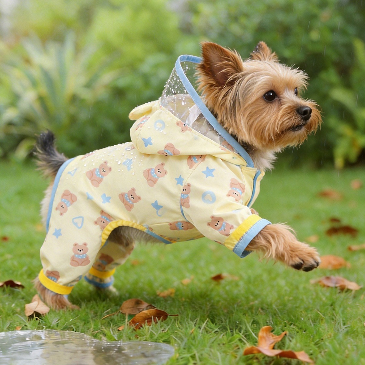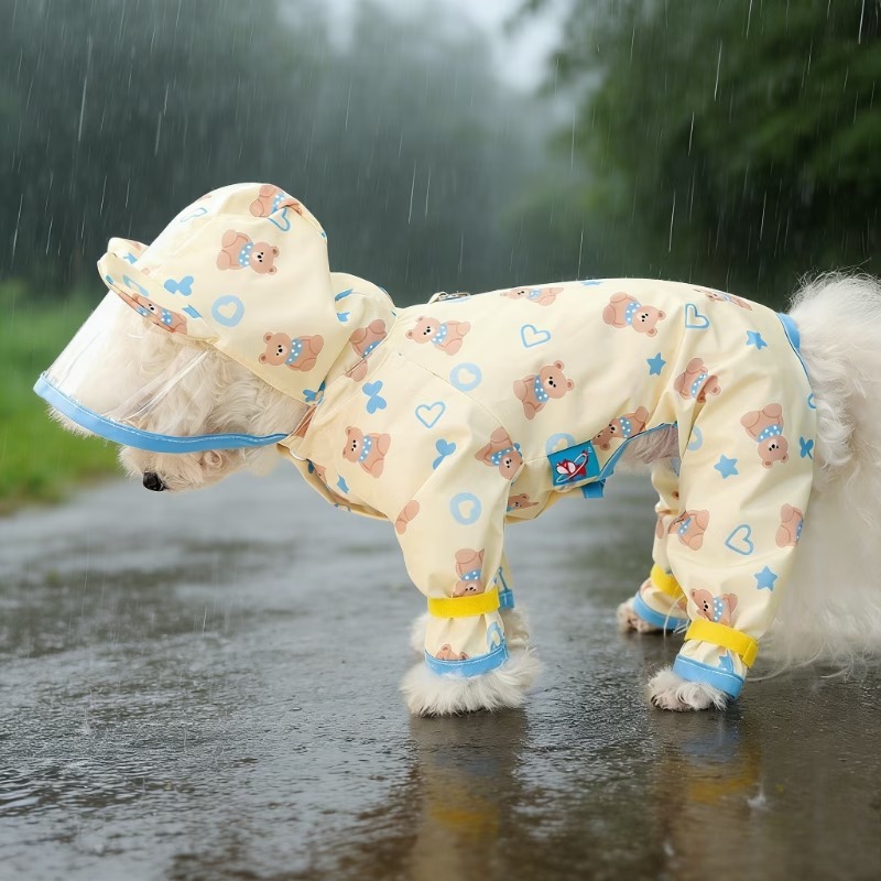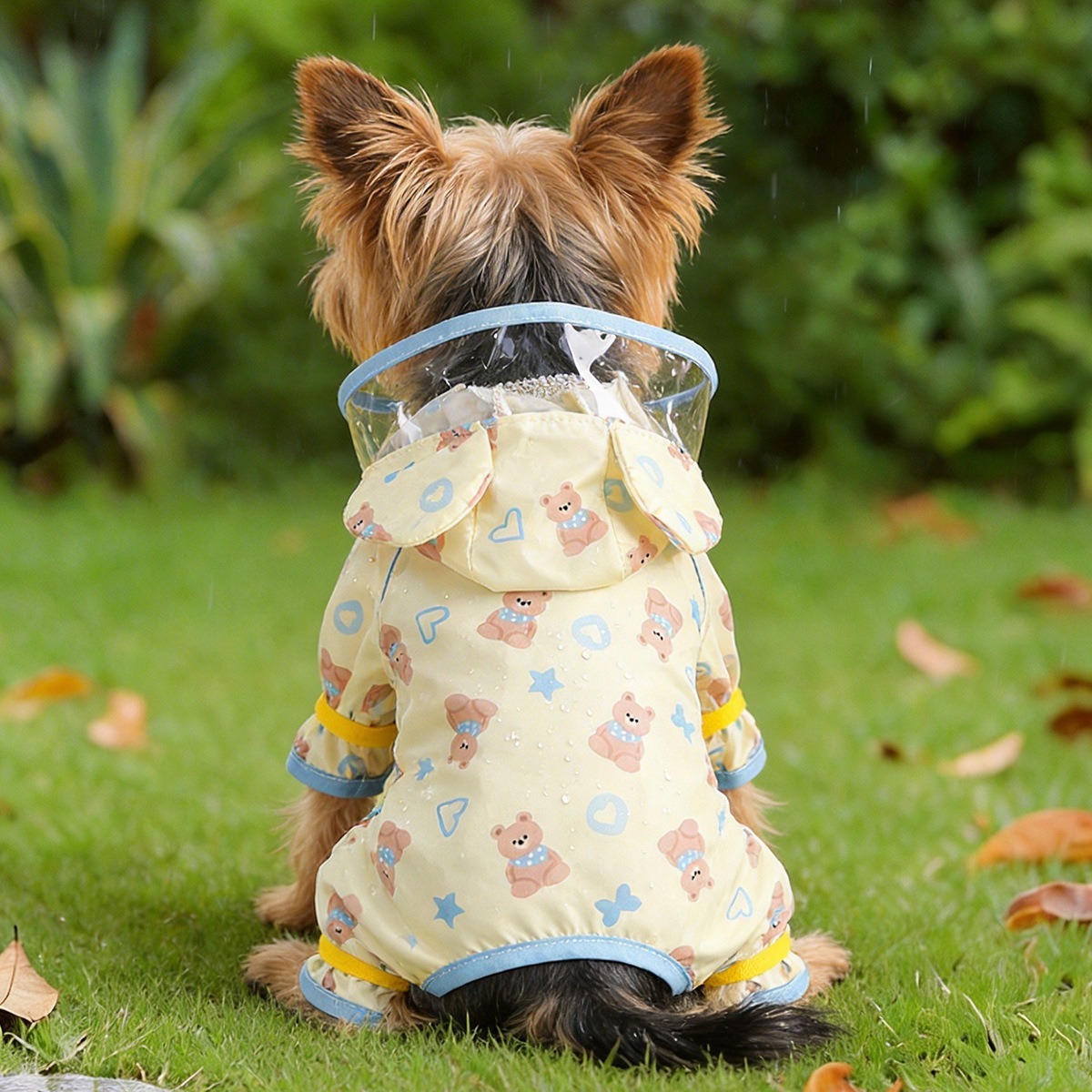 【予約】くま柄レインコート 犬用 フード付き透明カバー 雨の日ウェア 小型犬 中型犬 防水お散歩服