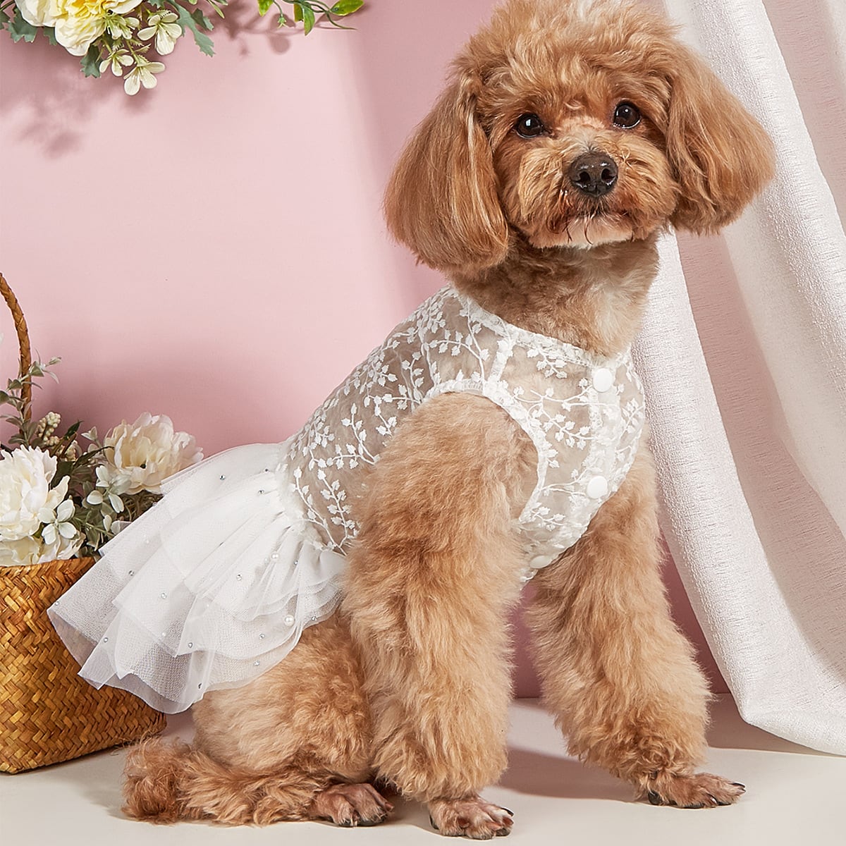 チュールスカート部分にはキラキラと輝くビジューが付けられ高級感もプラス。