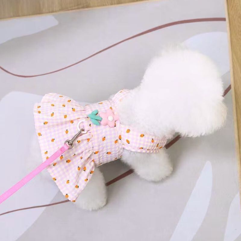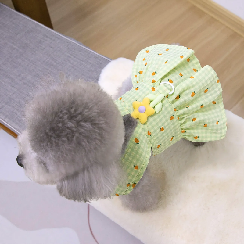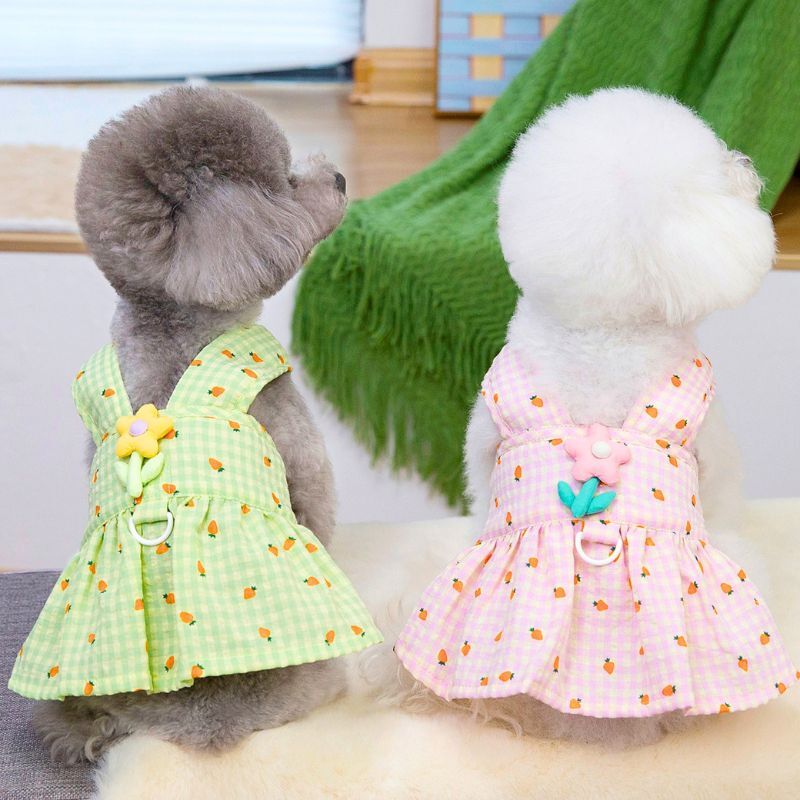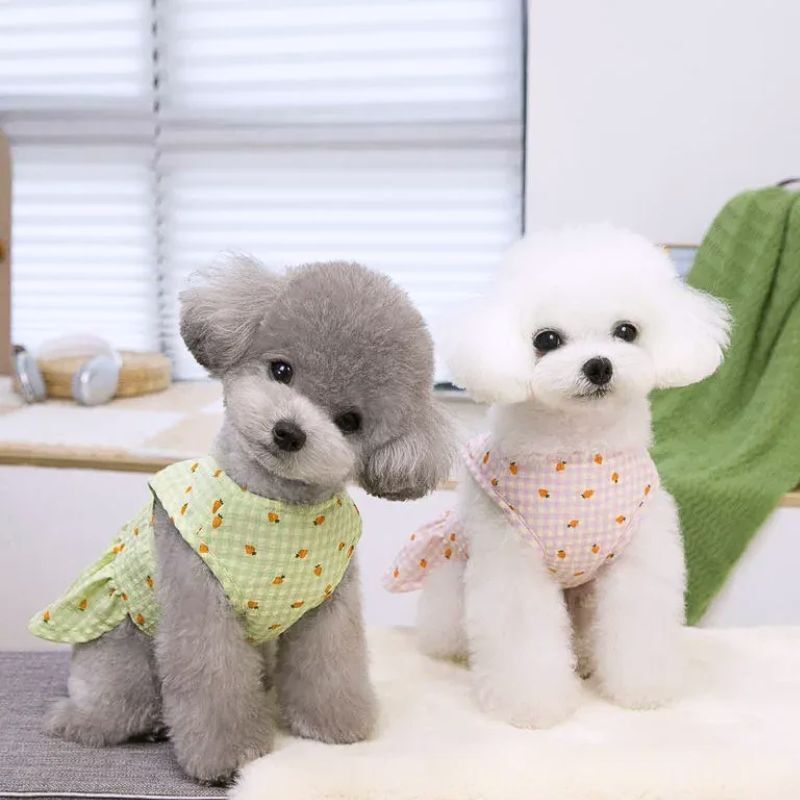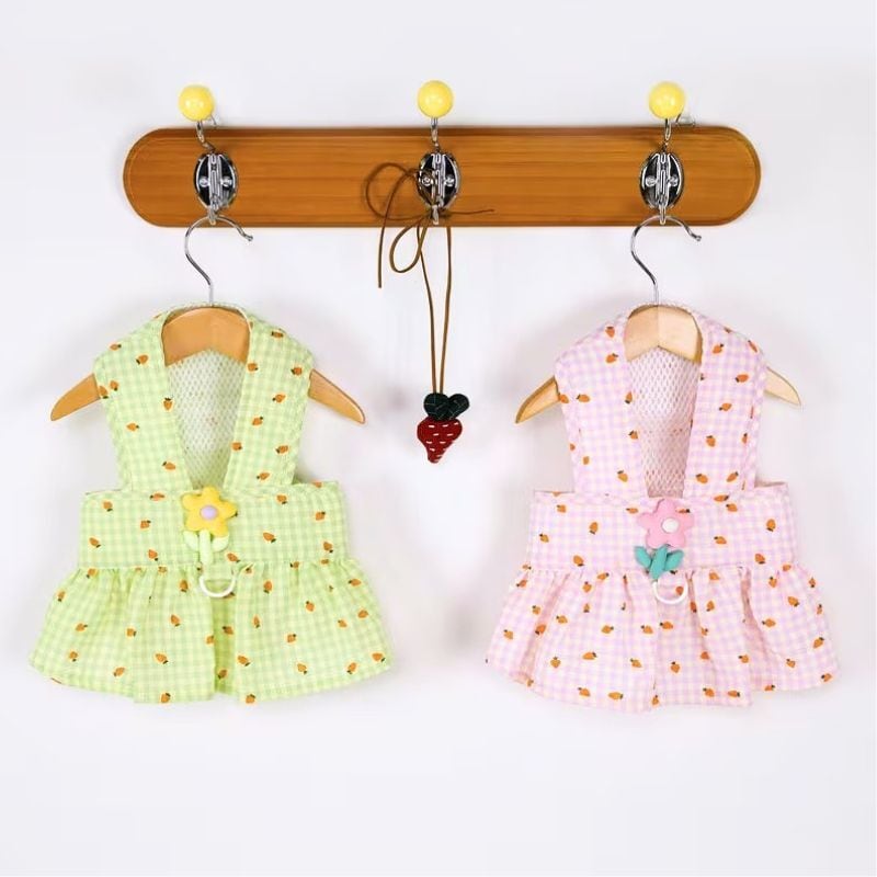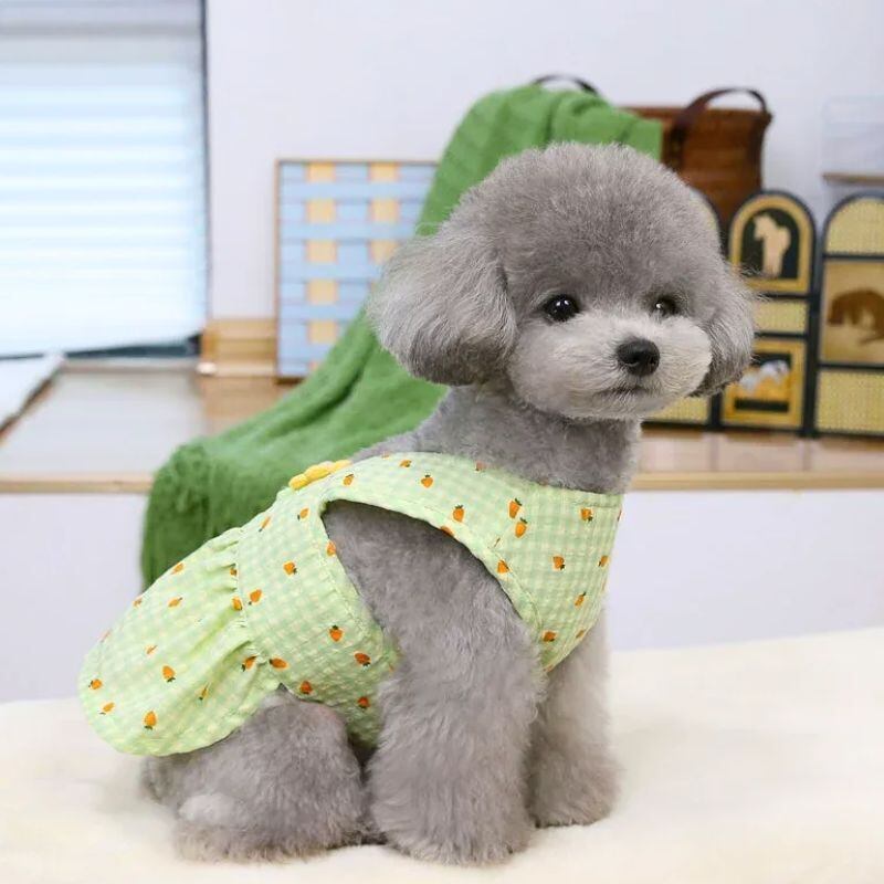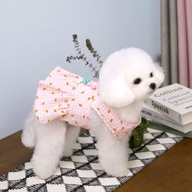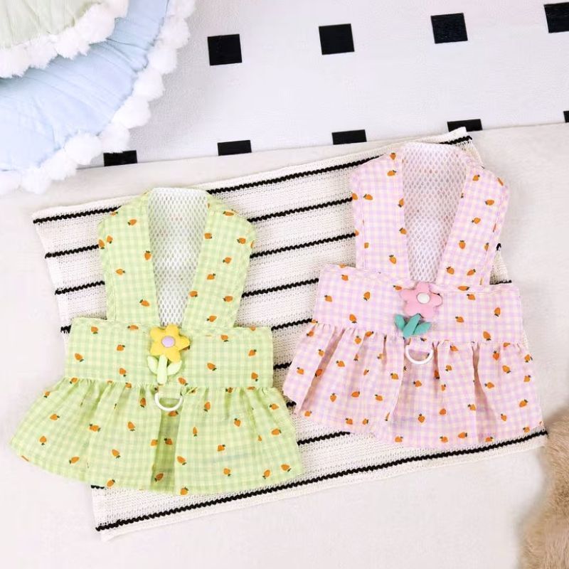 【予約】にんじん柄ギンガムチェックドッグワンピース|春夏メッシュ通気性 犬服 小型犬用